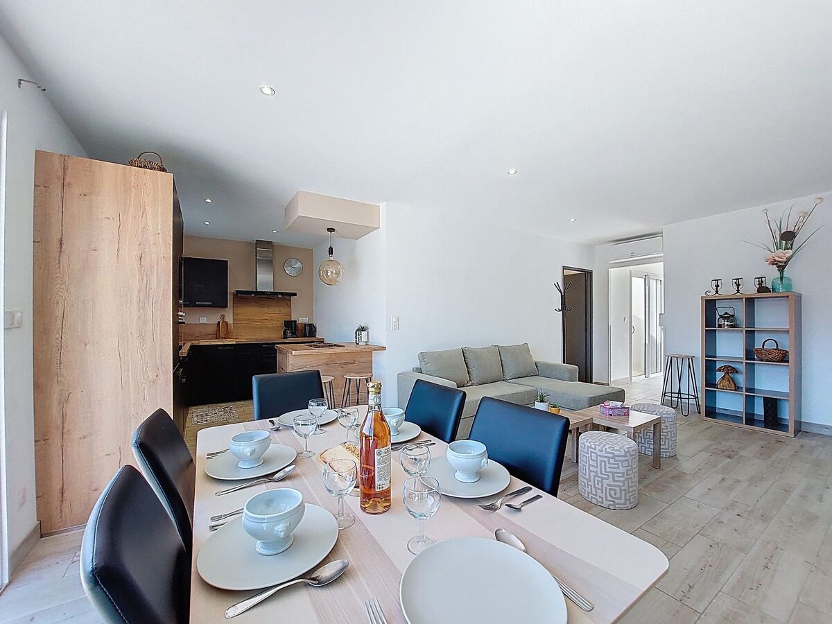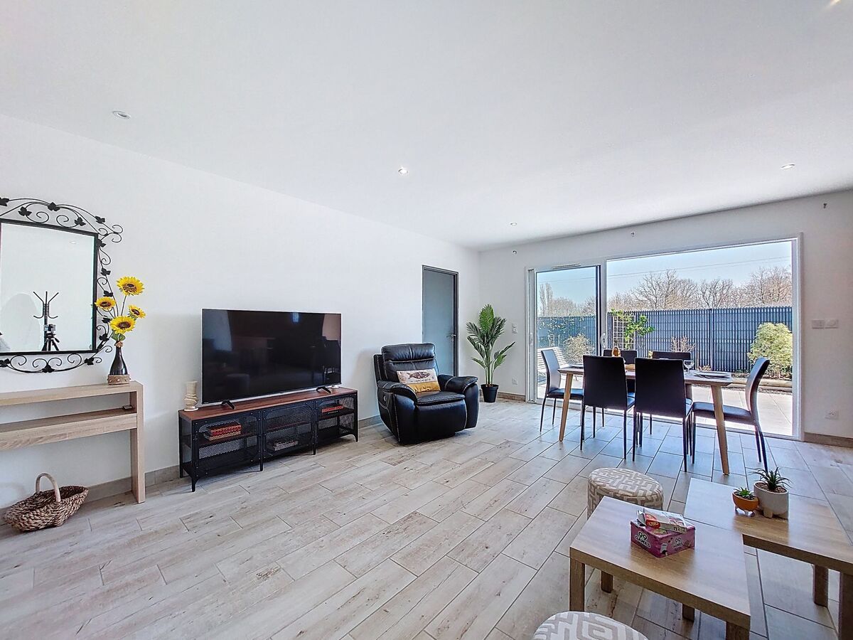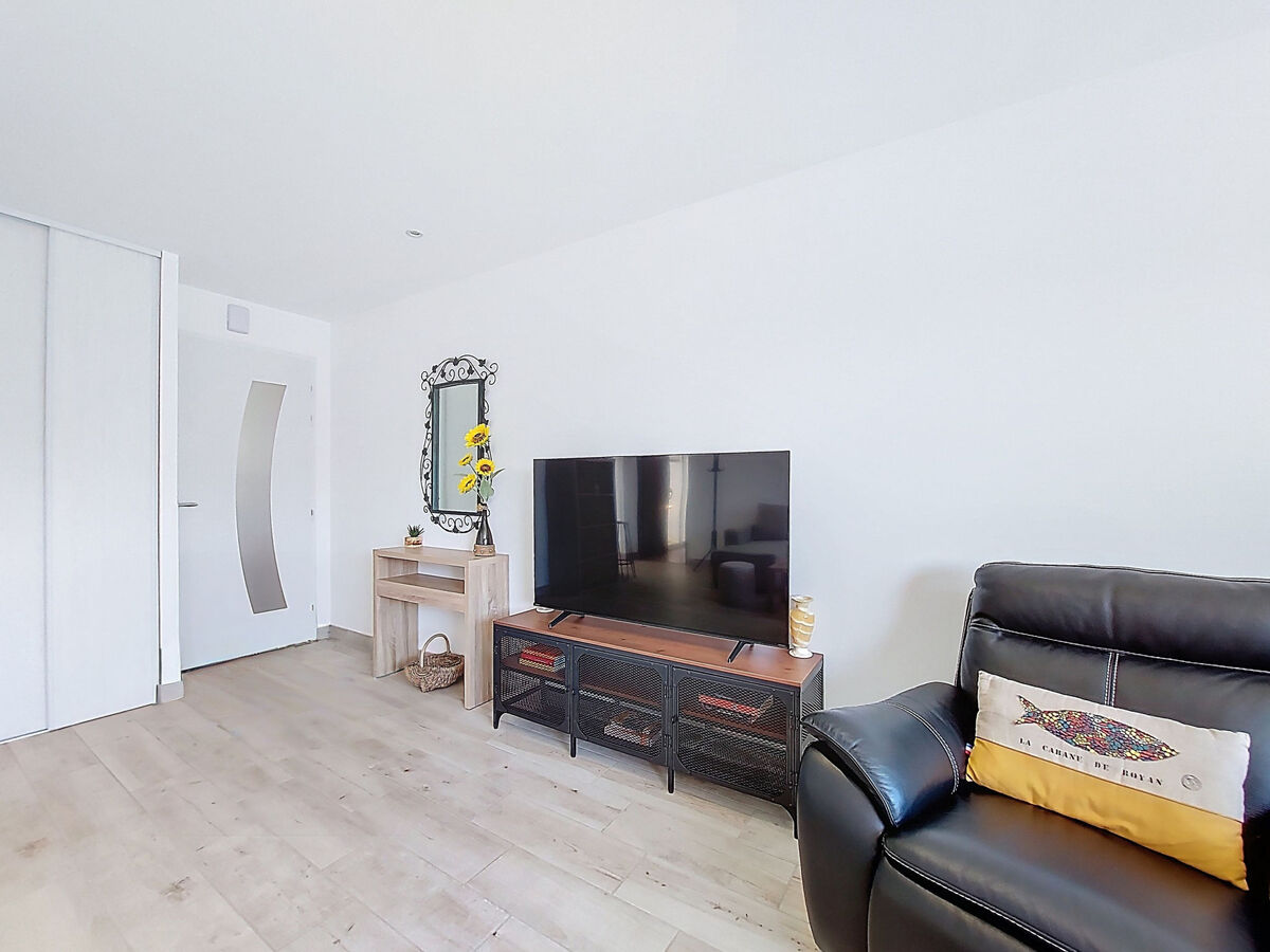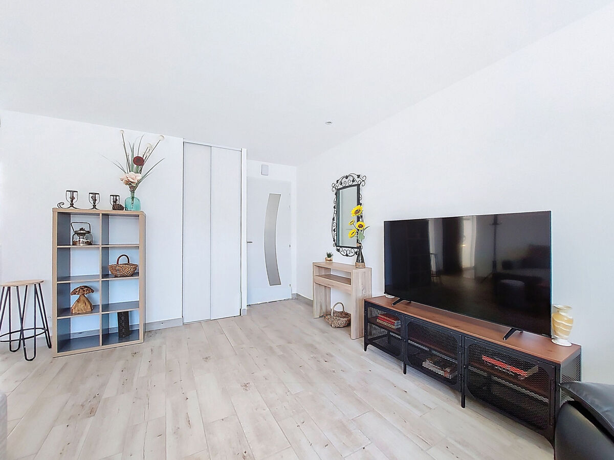 Aménagement moderne: séjour/salle à manger avec TV (écran plat), air-conditionné.
