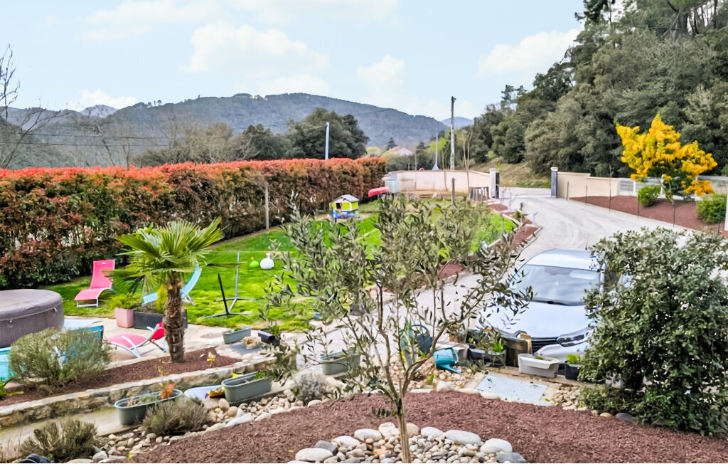Bien-être à l'extérieur : Location de vacances disposant de chaises-longues et d'un ou plusieurs équipements tels que piscine extérieure, jacuzzi extérieur, lit à baldaquin de jardin etc...