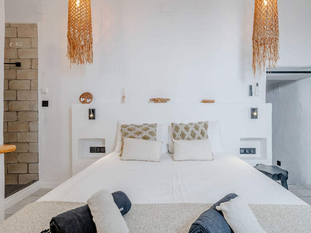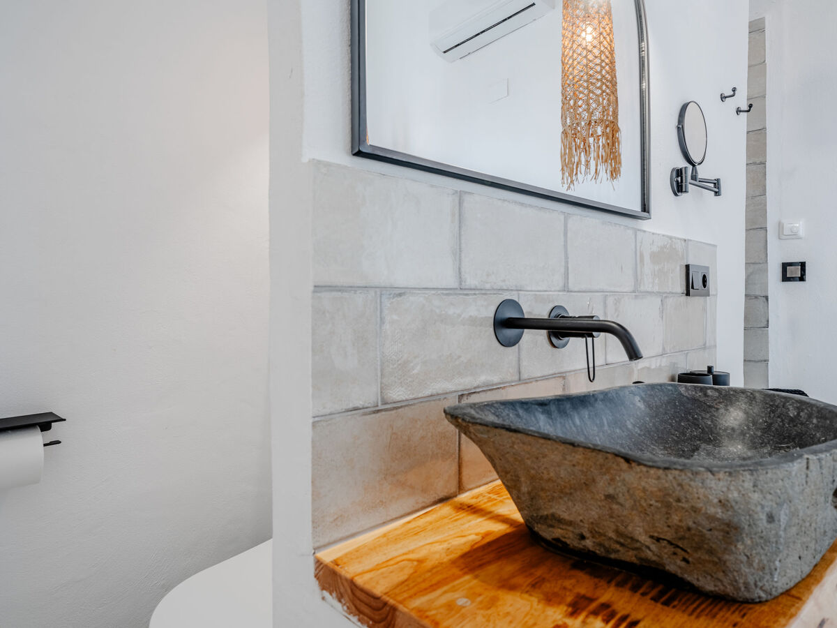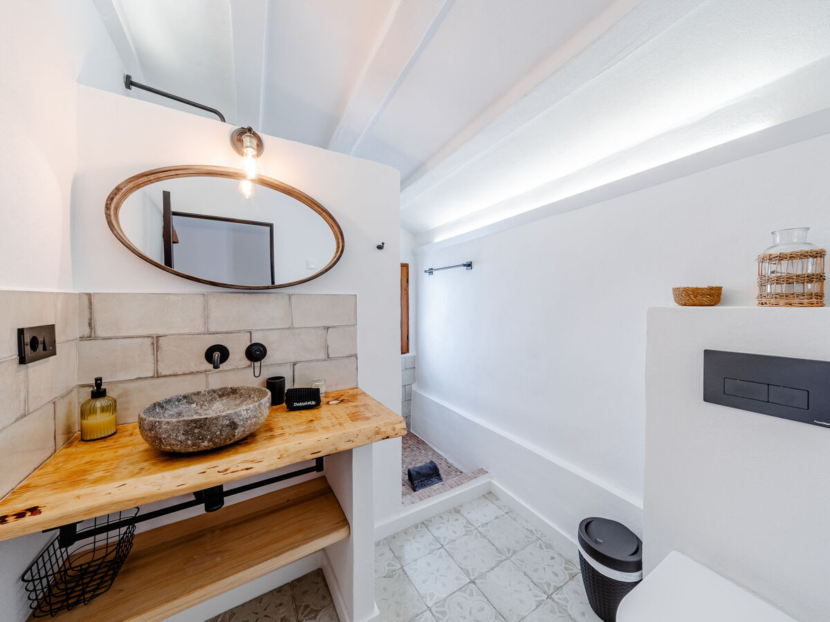 2ème étage: 1 chambre avec 1 grand-lit (160 cm, longueur 200 cm), douche/WC, air-conditionné et chauffage à air chaud.