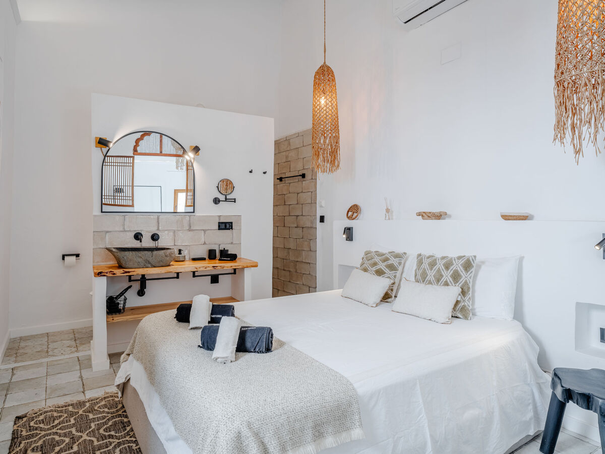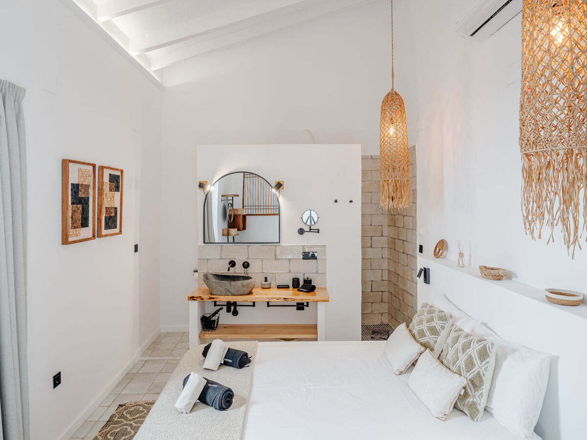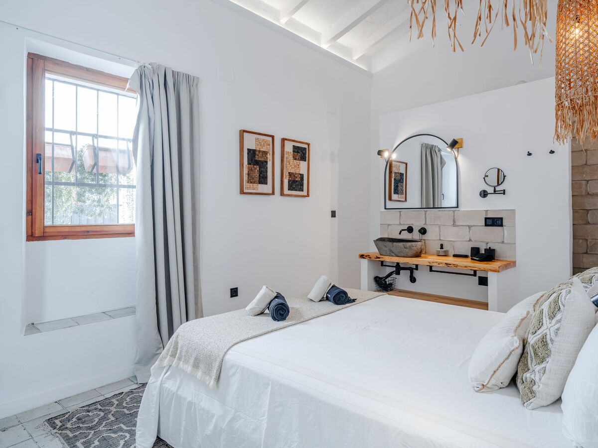 2ème étage: 1 chambre avec 1 grand-lit (160 cm, longueur 200 cm), douche/WC, air-conditionné et chauffage à air chaud.