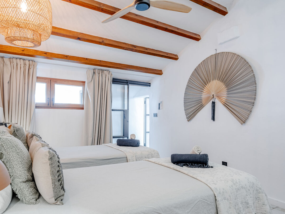 À l'étage supérieur: 1 chambre avec 2 lits (90 cm, longueur 190 cm), ventilateur.