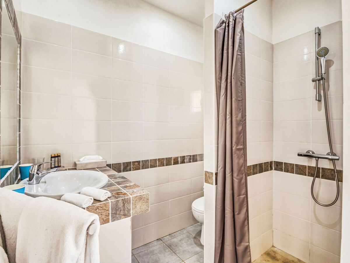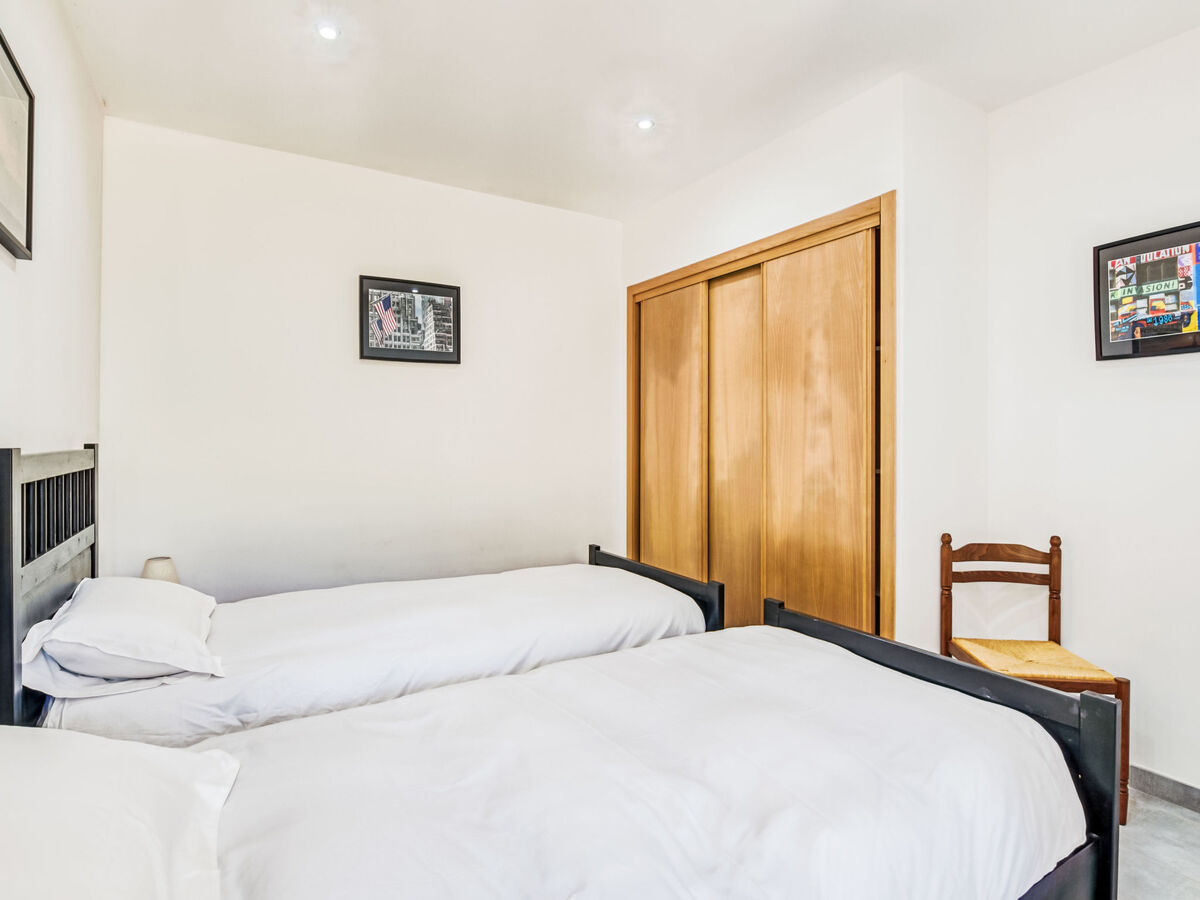 1 chambre avec 2 lits (90 cm, longueur 190 cm), douche/WC.