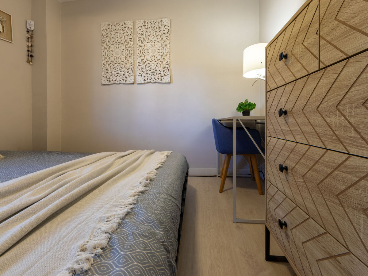1 chambre double avec 1 grand-lit (150 cm, longueur 190 cm), ventilateur.