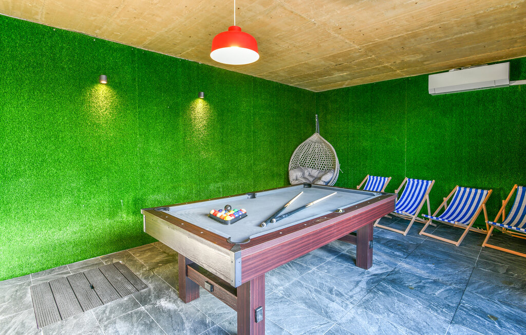 Cette villa moderne et spacieuse séduit par son design minimaliste de qualité et offre beaucoup d'espace pour profiter de ses nombreux extras avec une grande famille ou un groupe d'amis. Créez des plats de choix, réunissez-vous pour des repas élégants et, le soir, installez-vous sur l'élégant canapé pour regarder un film passionnant, faites une partie de billard ou détendez-vous dans la piscine intérieure.