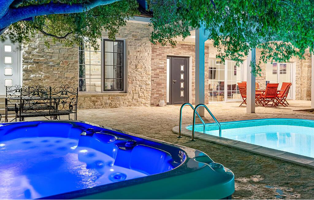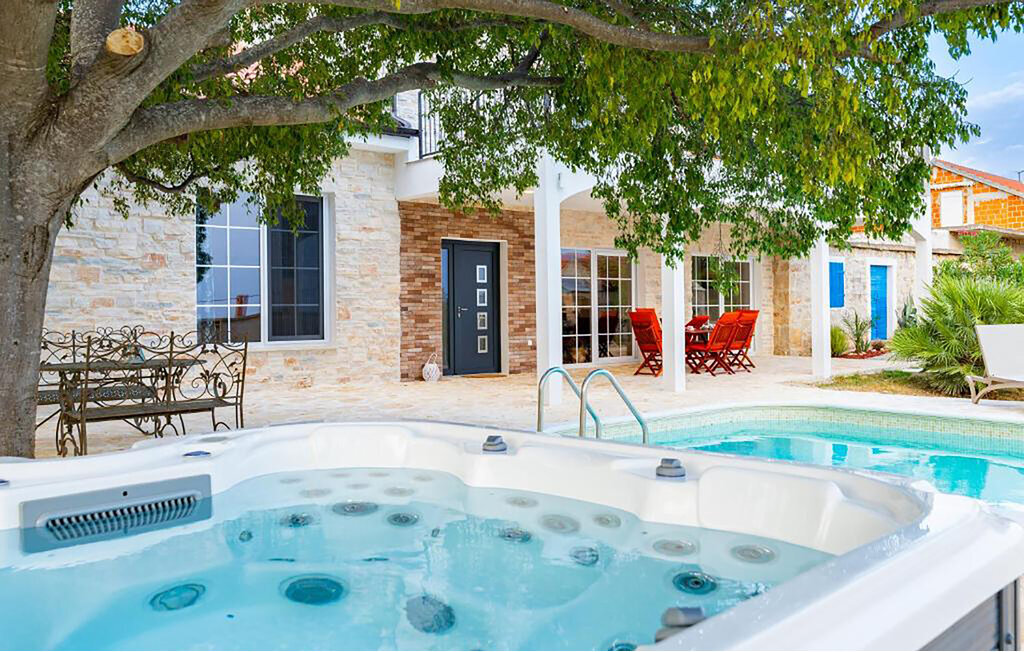 Bien-être à l'extérieur : Location de vacances disposant de chaises-longues et d'un ou plusieurs équipements tels que piscine extérieure, jacuzzi extérieur, lit à baldaquin de jardin etc...