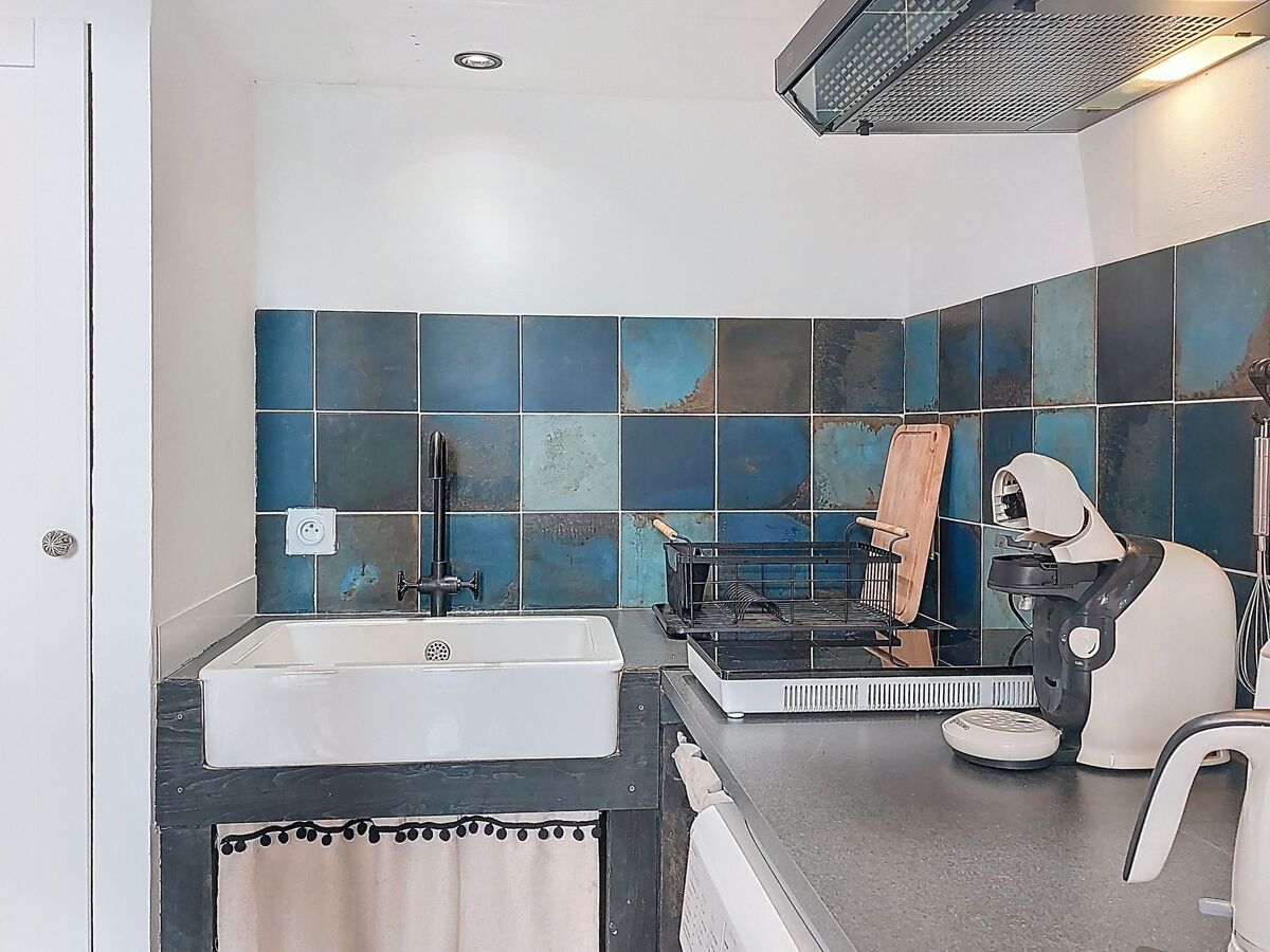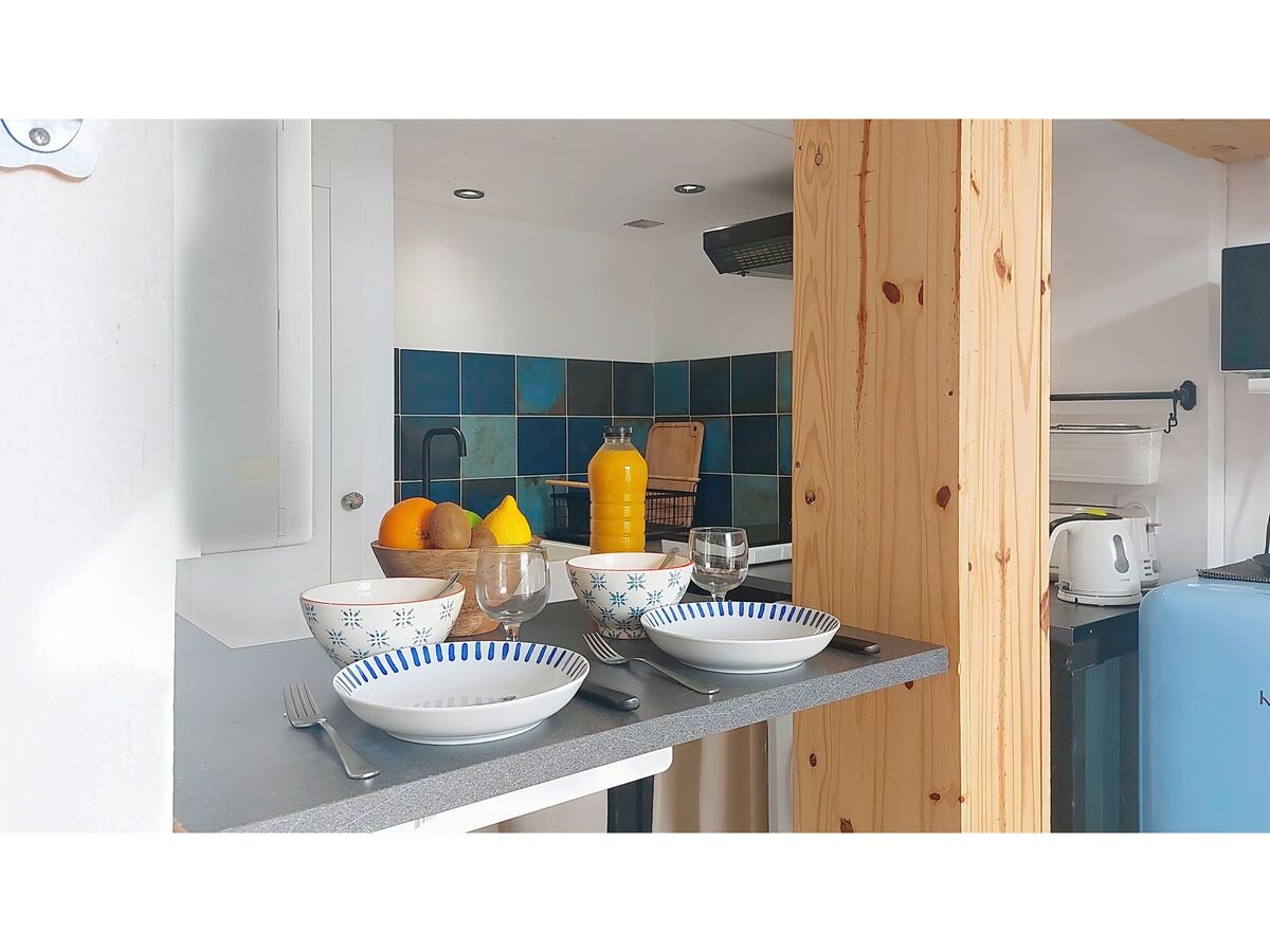 Petite cuisine (mini-four, four, lave-vaisselle, 2 plaques vitrocéramiques, grille-pain, bouilloire électrique, micro-ondes, cafetière électrique).