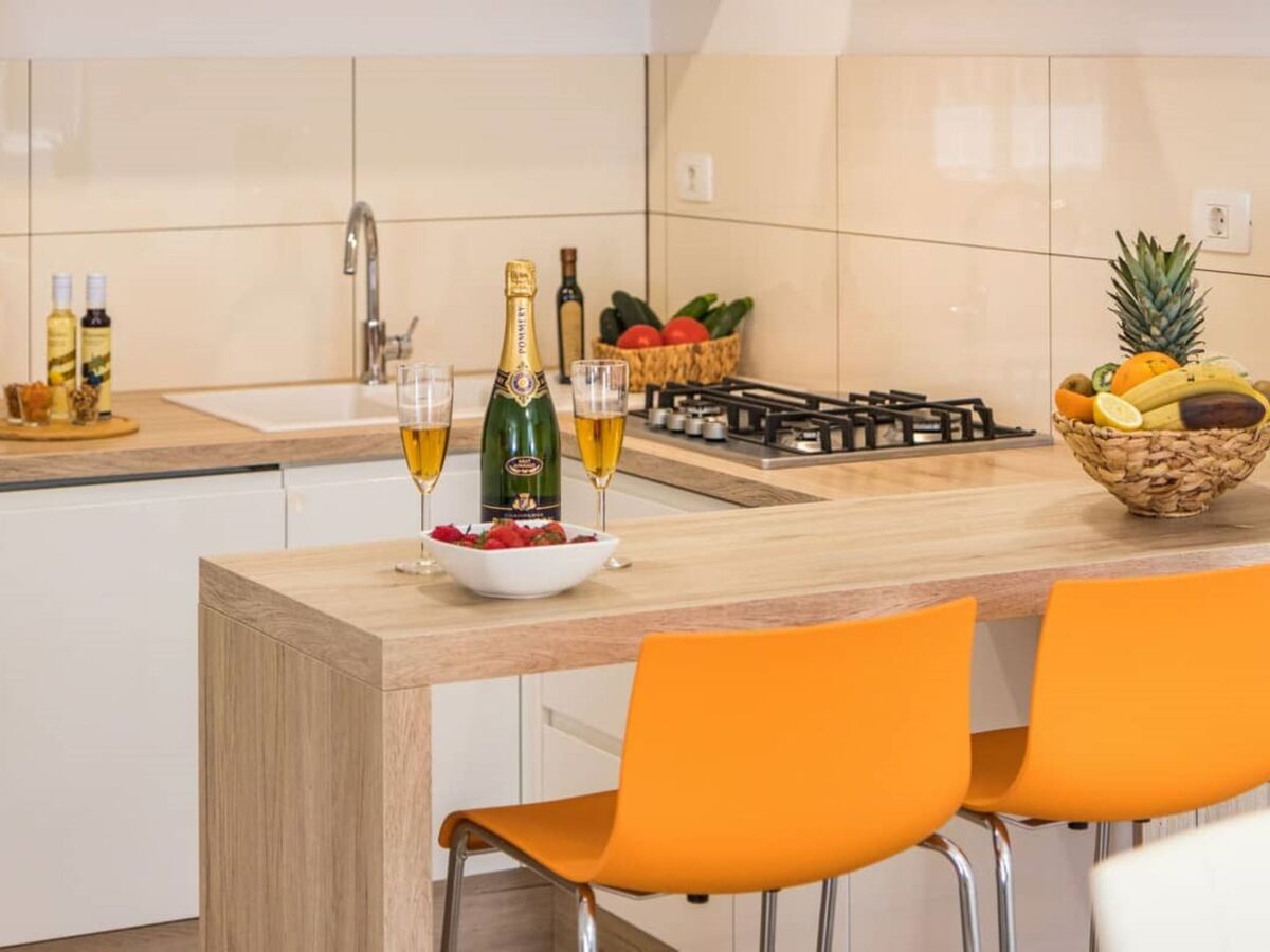 Cuisine ouverte (four, lave-vaisselle, Poêle à gaz, 4 feux, micro-ondes, congélateur, cafetière électrique).