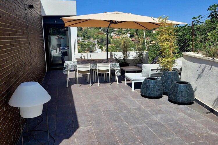 La villa dispose de deux chambres doubles spacieuses, dont une avec un lit simple convertible en canapé. À l'étage, vous découvrirez un salon/salle à manger lumineux et élégant avec télévision et une vue imprenable sur la piscine et les montagnes. La cuisine américaine est entièrement équipée avec tous les ustensiles et le lave-vaisselle. Les animaux de compagnie sont les bienvenus.