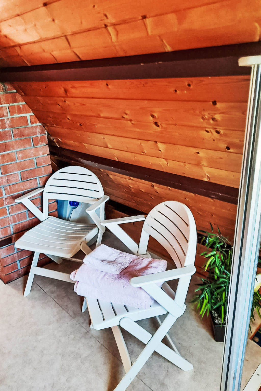 Douche extérieure, ping-pong, espace de jeux pour les enfants.