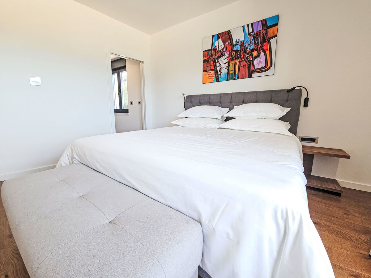 À l'étage supérieur: 2 chambres, chaque chambre avec: 1 grand-lit (180 cm, longueur 200 cm), douche/WC et TV (satellite) (écran plat), air-conditionné.