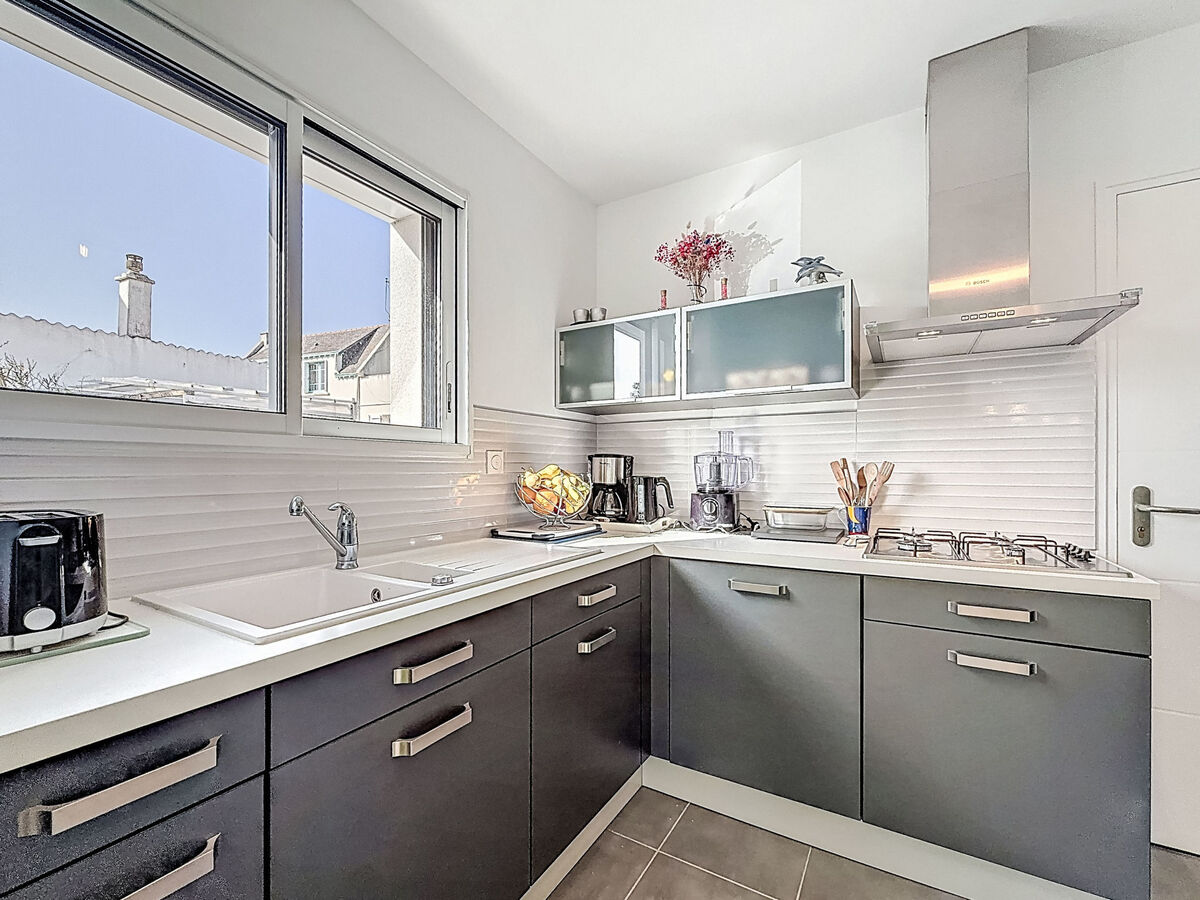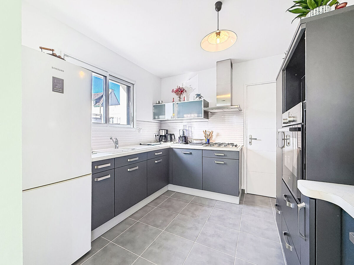 Cuisine (four, lave-vaisselle, 4 feux, grille-pain, bouilloire électrique, micro-ondes, congélateur, cafetière électrique, Capsules pour machine à café (Senseo) (NON INCLUSES)).