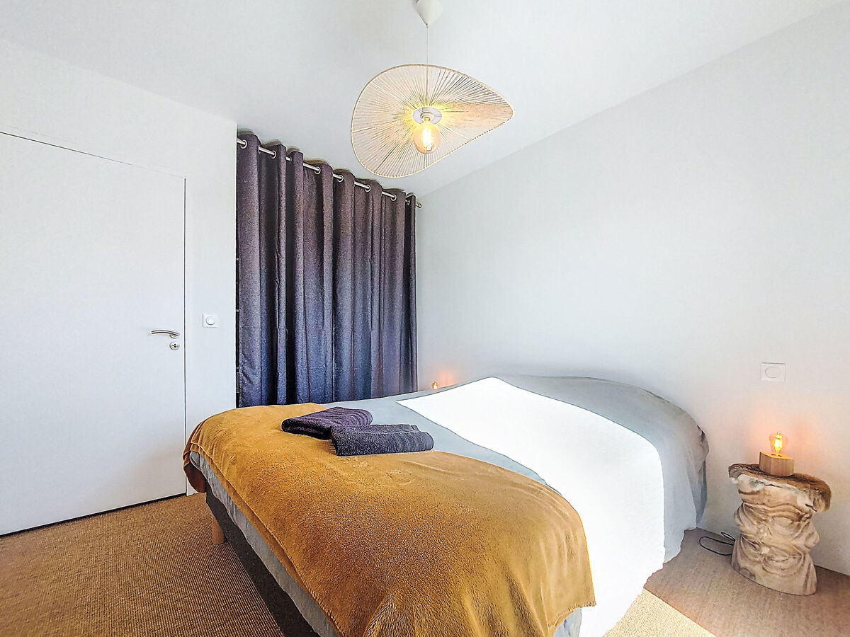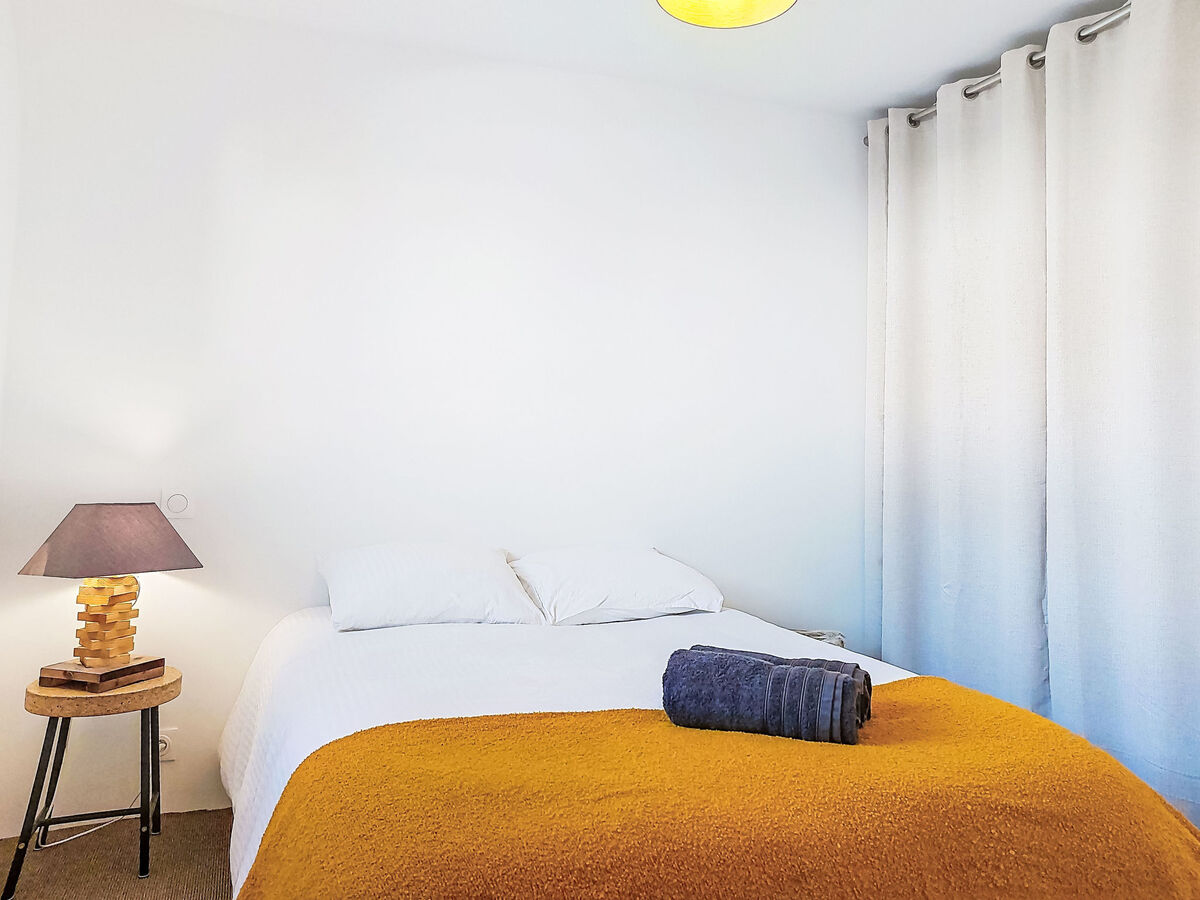 1 chambre avec 1 grand-lit (160 cm, longueur 210 cm).