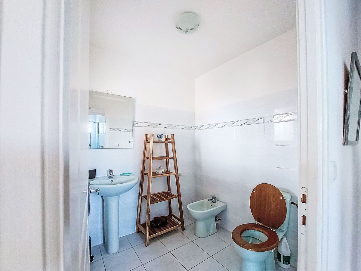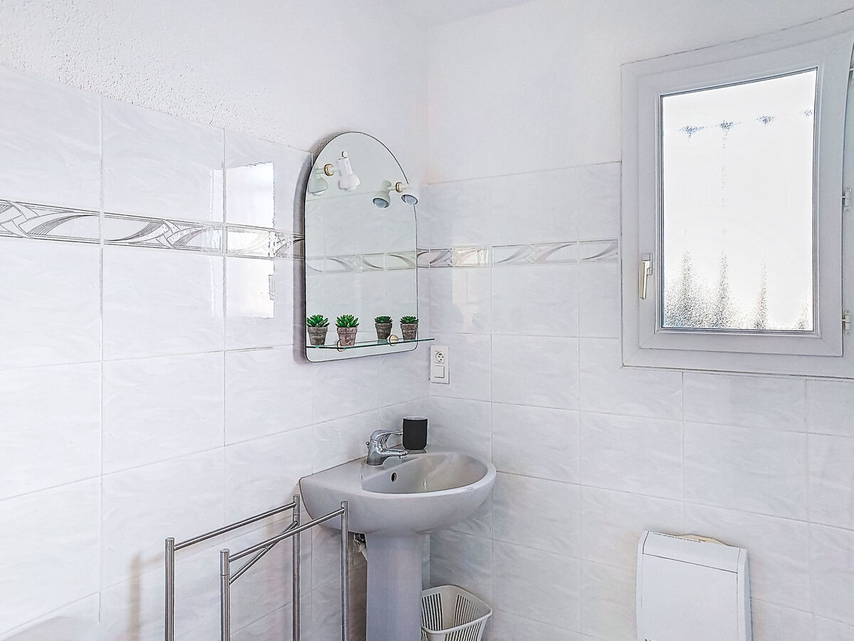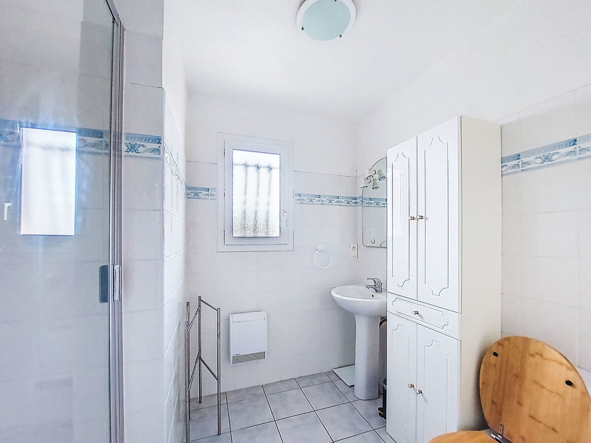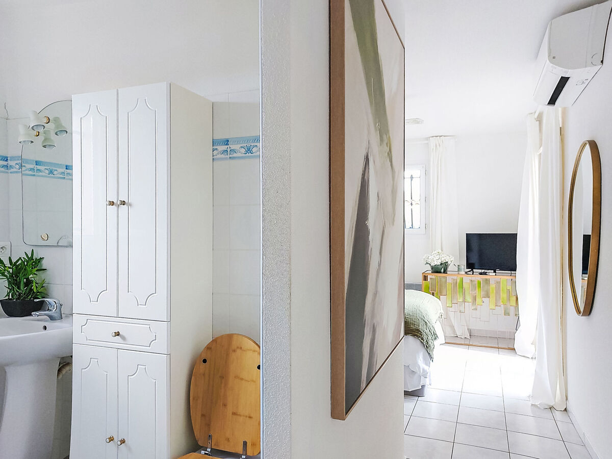 À l'étage supérieur: 1 chambre avec 1 grand-lit (1 x 140 cm, longueur 190 cm), bidet, WC séparés, douche et TV (écran plat), air-conditionné.