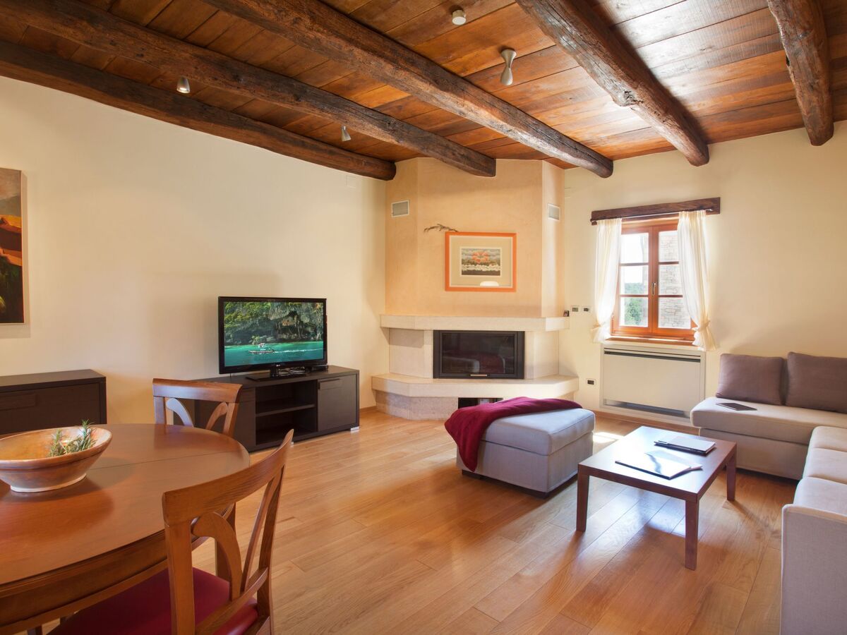 Aménagement confortable et de bon goût: séjour avec cheminée, TV (satellite) et air-conditionné.