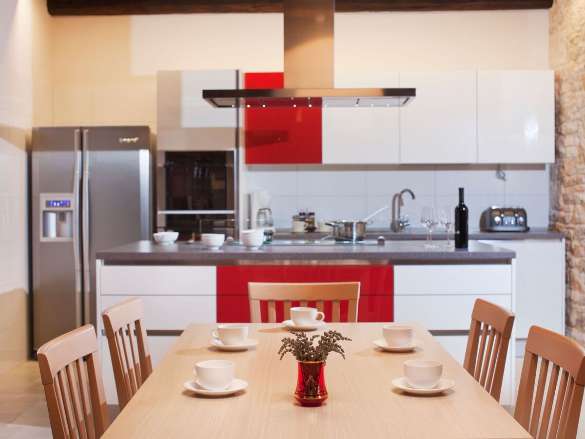 Cuisine ouverte (4 plaques de cuisson, four, lave-vaisselle, micro-ondes, congélateur).