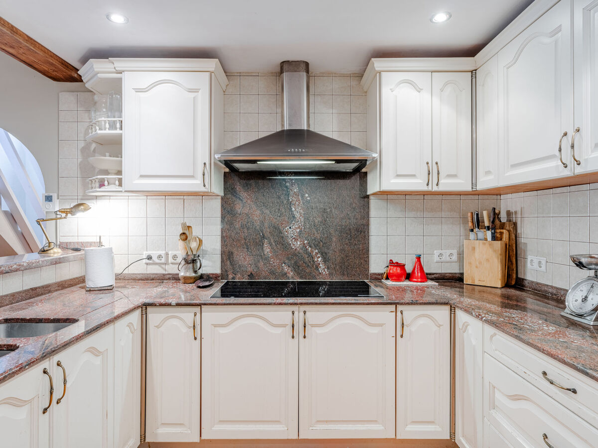 Grande cuisine ouverte (four, 3 plaques à induction, grille-pain, bouilloire électrique, micro-ondes, congélateur, cafetière électrique, Capsules pour machine à café (Nespresso) (NON INCLUSES)).