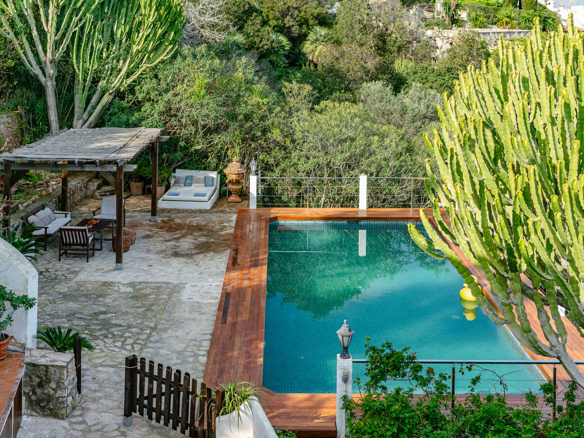 A usage privé: grand, beau jardin sur plusieurs niveaux, piscine rectangulaire (10 x 5 m, profondeur 40 - 220 cm, disponibilité saisonnière: 01.Jan.