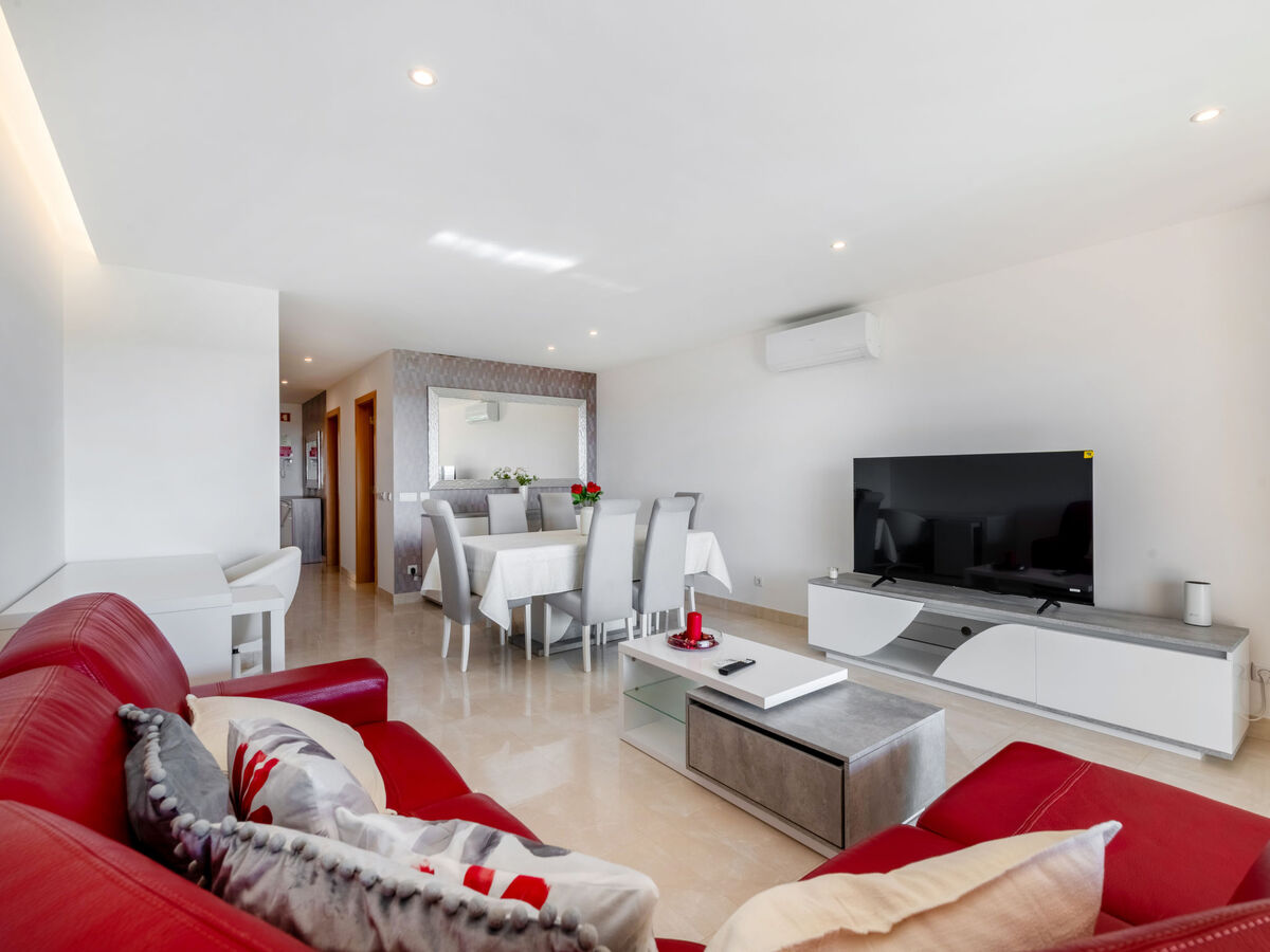 Clair, aménagement confortable et moderne: séjour/salle à manger avec TV (écran plat), air-conditionné et chauffage à air chaud.