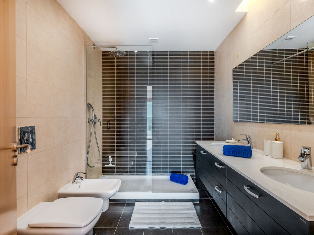 1 chambre avec 1 grand-lit (1 x 160 cm, longueur 200 cm), bain/bidet/WC, air-conditionné et chauffage à air chaud.