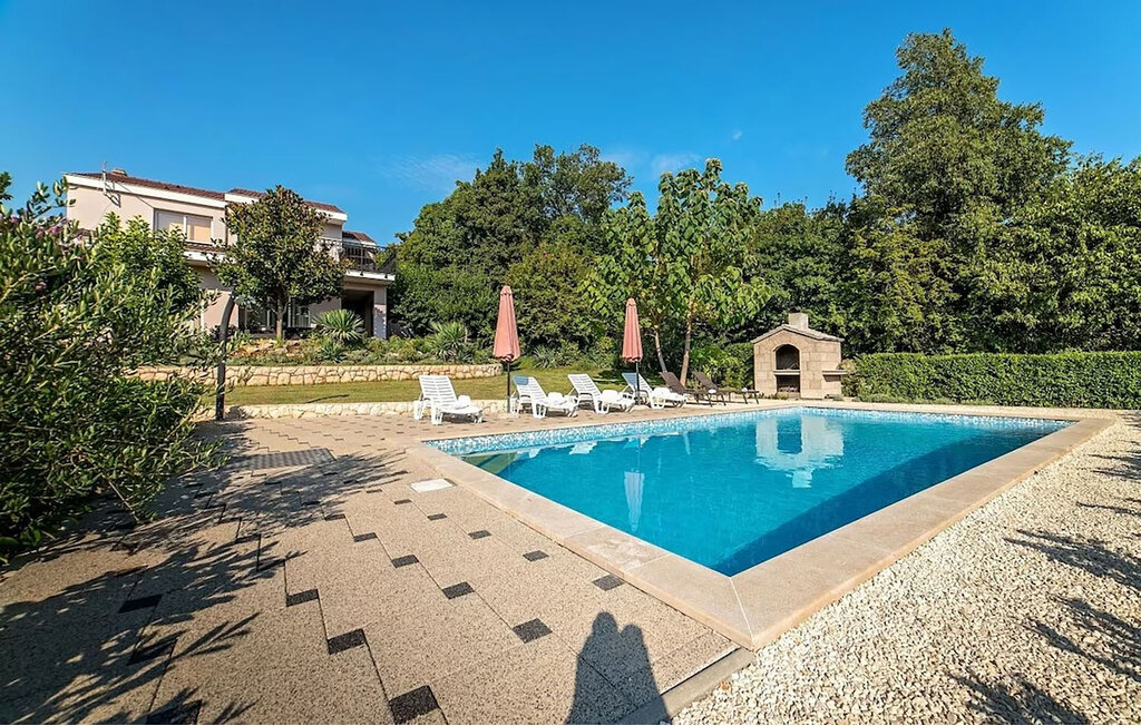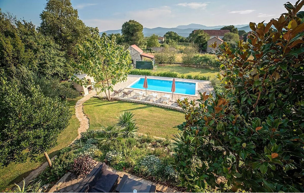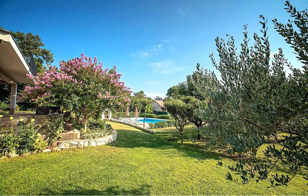 Bien-être à l'extérieur : Location de vacances disposant de chaises-longues et d'un ou plusieurs équipements tels que piscine extérieure, jacuzzi extérieur, lit à baldaquin de jardin etc...