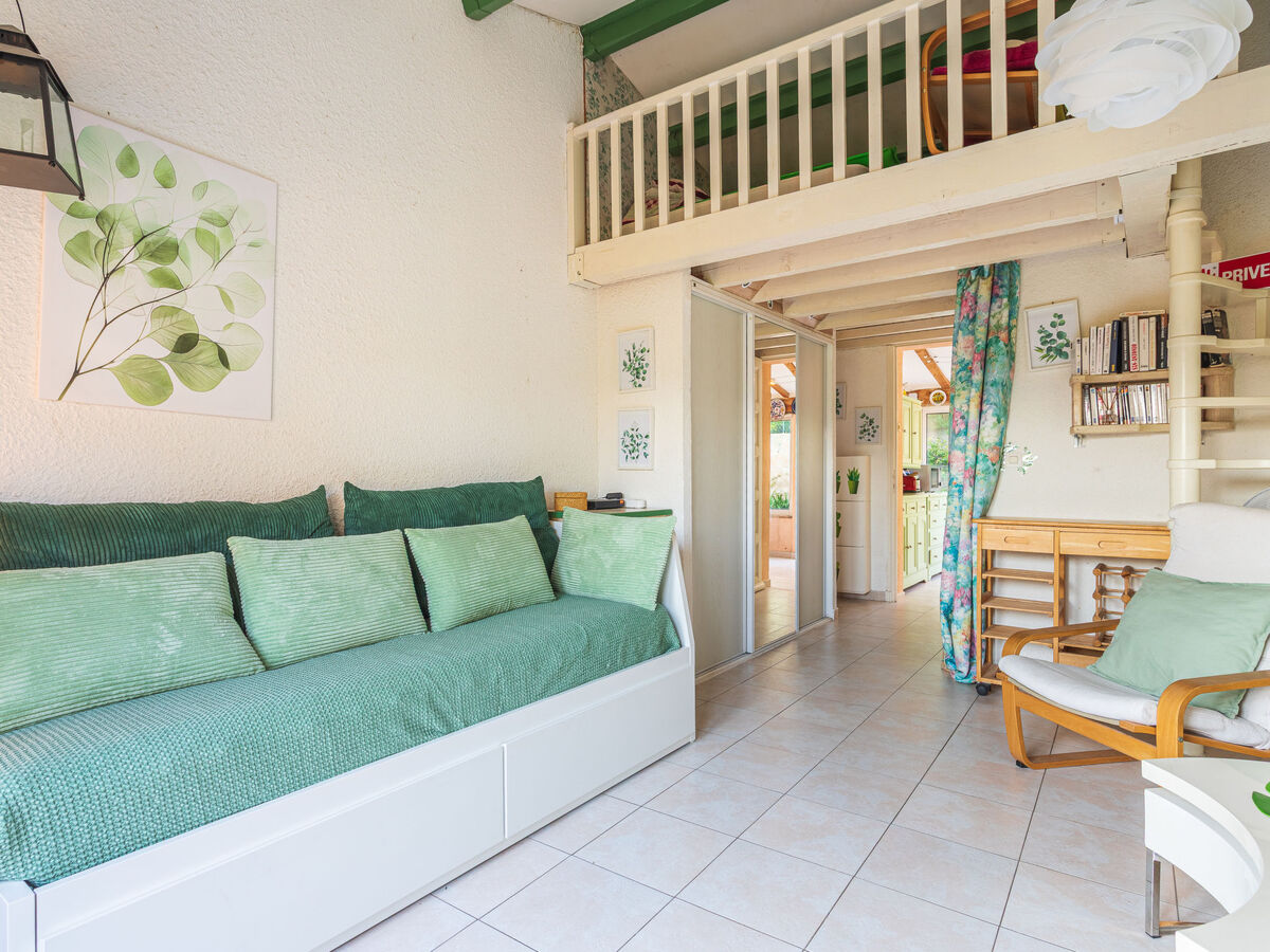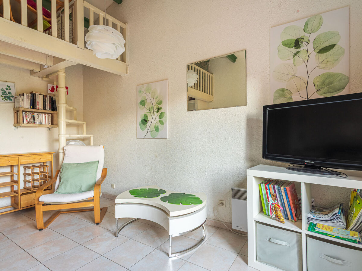 Aménagement plaisant: séjour avec 1 lit gigogne (2 x 80 cm, longueur 200 cm), TV, écran plat et air-conditionné.