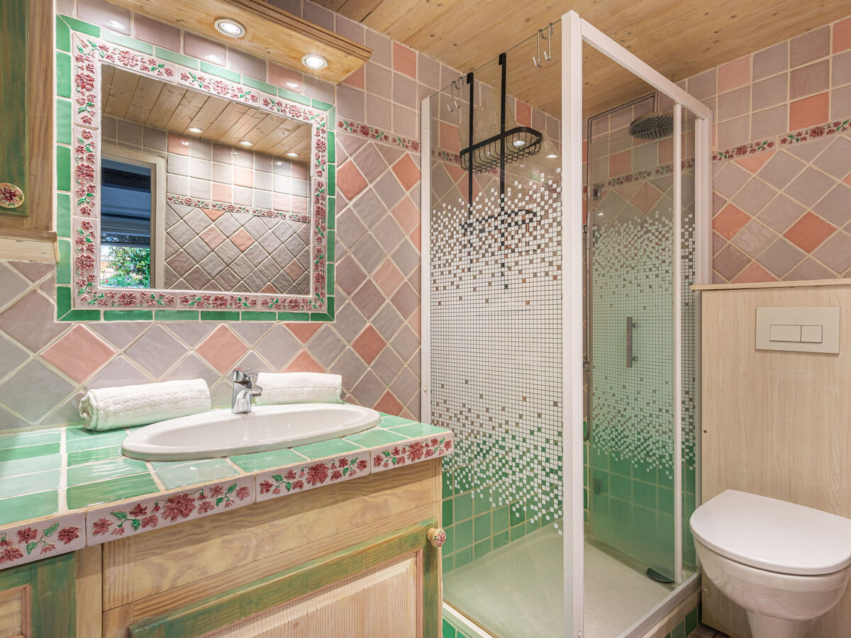 1 chambre avec 1 grand-lit (140 cm, longueur 200 cm), douche/WC.
