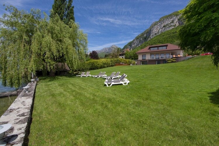 Cette villa 5 étoiles pieds dans l’eau de très haut standing pour 10 personnes est située sur la rive " Plein Soleil " du lac d’Annecy. La villa Bagatelle a été entièrement rénovée en 2015 pour vous apporter encore plus de confort! Les 5 chambres bénéficient toutes d'’une vue imprenable sur le lac et d'une salle de bain par chambre. L'’aménagement de la maison sur 3 niveaux et son mobilier sélectionné chez les plus grands designers, vous transporteront dans un univers magique. Un espace détente avec jacuzzi 5 places donnant sur une vue exceptionnelle, vous permettra de vous relaxer et de vous ressourcer en famille ou entre amis. Notre plage et ponton privés vous attendent et si vous possédez un bateau ou si vous souhaitez en louer un, vous disposerez de notre boucle d’amarrage. Idéalement située au cœur des Alpes (Genève 45 mn, Megève, Chamonix, Italie 1h, Méribel, Courchevel 1h30, Val d’Isère 2h), notre maison est également proche de toutes les commodités. Vous serez à 10 minutes du centre-ville d’Annecy et de ses commerces, à 15km de l’aéroport d’Annecy, 45km de celui de Genève en Suisse et 150km de celui de Lyon Satolas. Pour les amateurs de sports, notre maison est au cœur de toutes les activités : voile, ski nautique, wake-board, plongée, golf, équitation, luge d’été, tennis, randonnée, VTT, parapente, karting, … En saison d'hiver, les superbes stations de ski comme le Grand Bornand et la Clusaz (Annecy Ski Resorts), seront accessible en seulement 30 minutes. Vous y pratiquerez le ski alpin, le snow board, le ski de fond, la raquette, la moto neige, les balades en chiens de traineaux, … Vous aimerez : - Villa 5 étoiles de 250m² pour 10 personnes exposée Sud-Ouest - Parc de 1000m² - 5 chambres équipées d’une literie qualité « Palace » pour votre plus grand confort. Toutes ont vue sur le lac - Cuisine équipée (plaque vitrocéramique, four électrique, micro-ondes, lave-vaisselle, réfrigérateur/congélateur…) - Coin cheminée - Salon et salle à manger s’ouvrant sur une vaste terrasse de 100 m² face au lac - Climatisation - TV, home cinéma, lecteur DVD, chaînes satellites et lecteur Ipod - Connexion Internet haut débit - Coffre-fort hôtel - 2 salles de bain et 3 salle d’eau pour votre plus grand confort - Deux WC indépendants et 1 WC dans chaque salle de bain - Buanderie avec machine à laver et sécher le linge, table et fer à repasser - Grande table extérieure, salon de jardin et chaises longues - BBQ et plancha - Spa 5 places - Plage, ponton et boucle d’amarrage privés - Parking 3 places - Lit Bébé, chaise haute, petite baignoire et poussette canne sur demande