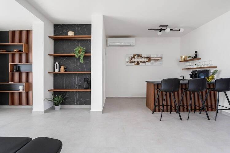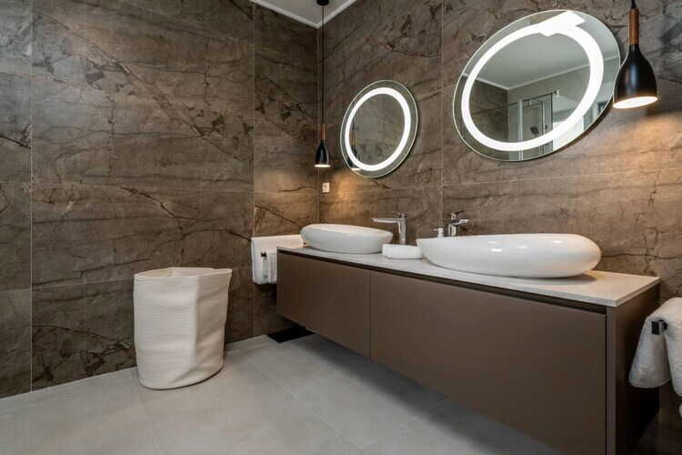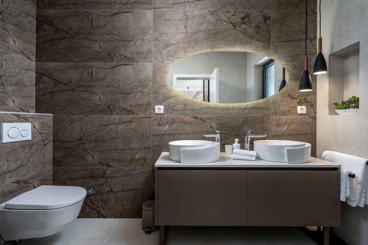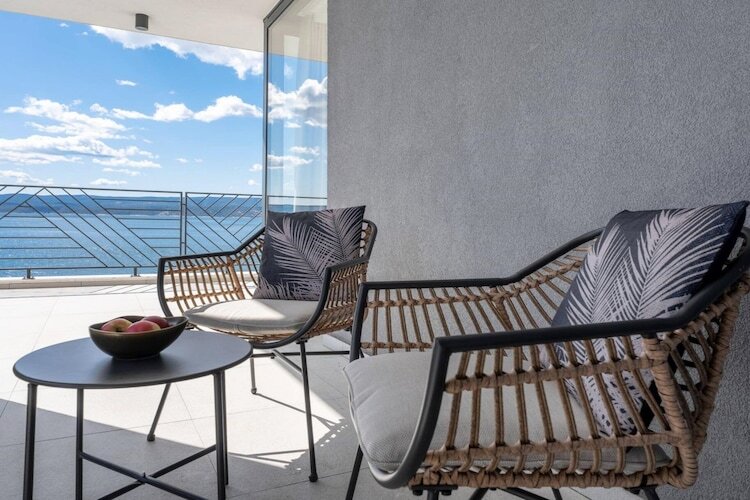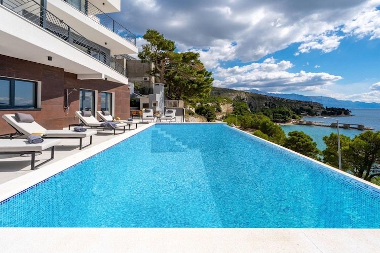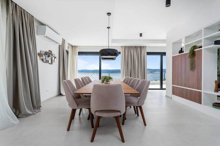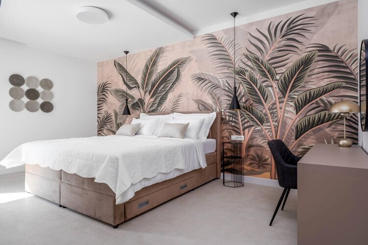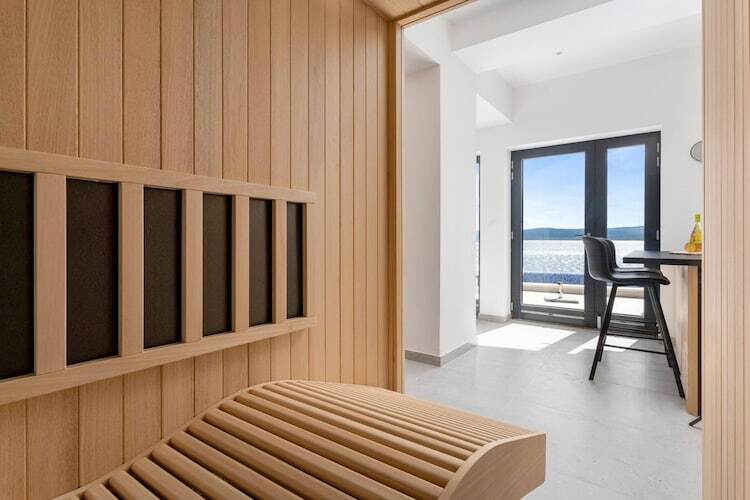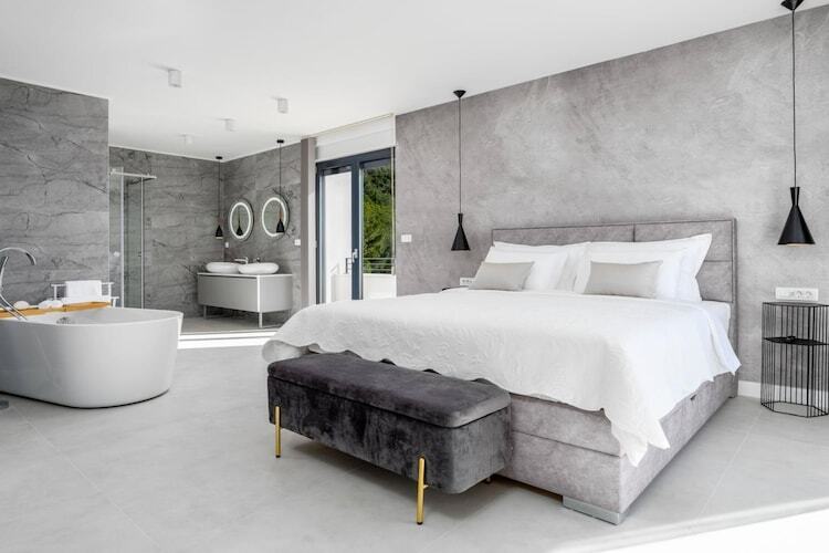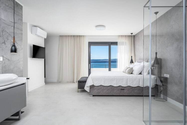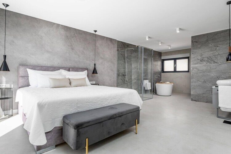 Les chambres sont réparties sur les étages supérieurs afin de garantir une intimité optimale et des vues imprenables. Chacune des cinq chambres climatisées dispose d'un lit king-size et d'une salle de bains privative. Les suites parentales du dernier étage sont particulièrement luxueuses, avec leurs baignoires profondes et leur accès privé à une terrasse partagée – un point de vue idéal pour admirer le lever du soleil magique sur la Dalmatie.