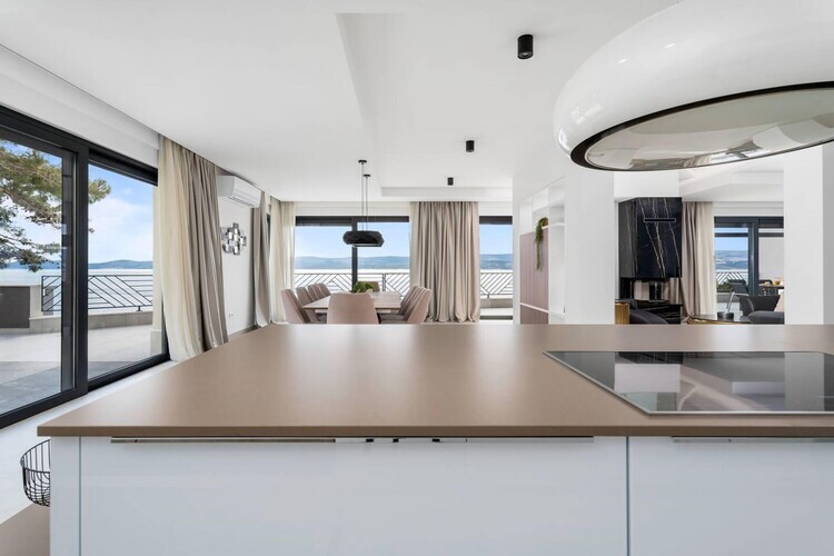 Bienvenue à la Villa Euphorica, un havre de paix exceptionnel de 490 m² à Lokva Rogoznica, à seulement 20 mètres du rivage. Ce chef-d'œuvre de cinq étages incarne l'art de vivre côtier moderne, alliant harmonieusement bien-être haut de gamme et charme méditerranéen. Que vous descendiez l'escalier privé menant directement à une plage de galets isolée ou que vous admiriez le coucher de soleil sur l'île de Brač depuis votre terrasse, cette villa offre une expérience 5 étoiles incomparable pour un maximum de 10 personnes.