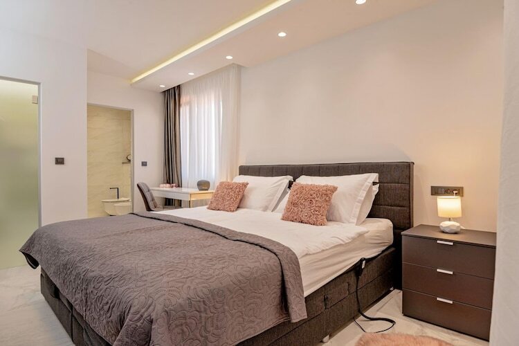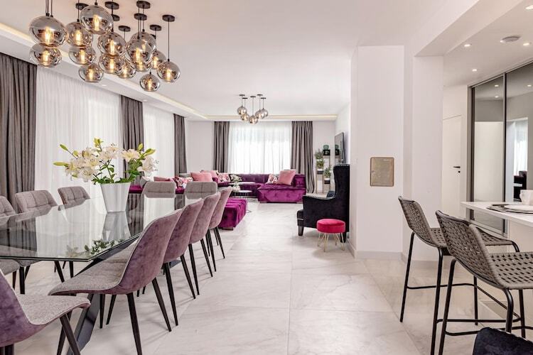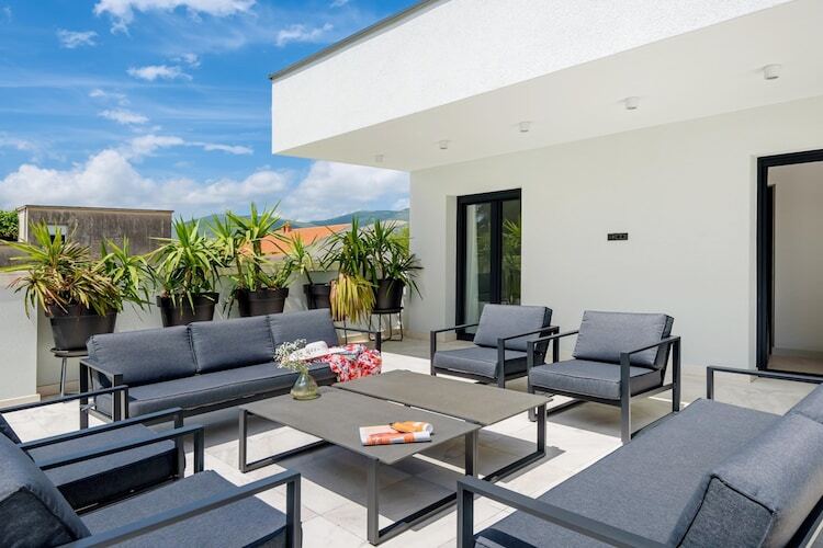 Imaginez un vaste domaine où luxe contemporain et loisirs haut de gamme se conjuguent à la beauté paisible de la côte dalmate. Bienvenue à la Villa Velvet Bourbon, une résidence d'exception de 300 m² nichée sur un terrain de 1 500 m² à Kaštel Stari. Idéalement située à seulement 80 mètres de la mer, cette villa est accessible en une minute à pied par un charmant sentier forestier ombragé. Que vous organisiez un tournoi de tennis en famille sur le court privé ou que vous vous détendiez au bord de la piscine d'eau salée chauffée de 50 m², ce domaine est un modèle d'excellence pour des vacances 5 étoiles pouvant accueillir jusqu'à 12 personnes.