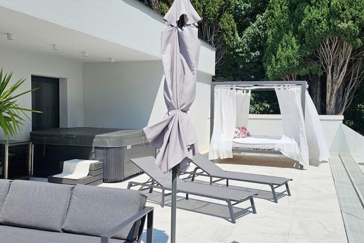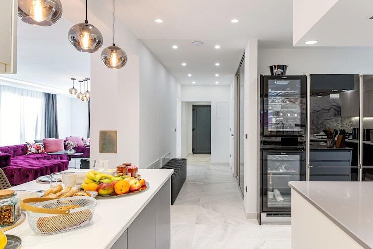 À l'intérieur, la villa se déploie sur trois niveaux baignés de lumière et propose cinq chambres spacieuses, chacune avec sa propre salle de bains. La suite parentale, au deuxième étage, est un véritable havre de paix, avec sa terrasse privée équipée d'un jacuzzi, de chaises longues et d'une télévision murale extérieure. De la cuisine haut de gamme avec cave à vin à la confortable salle de jeux pour enfants et aux lits king-size réglables, chaque détail a été pensé pour un confort optimal.