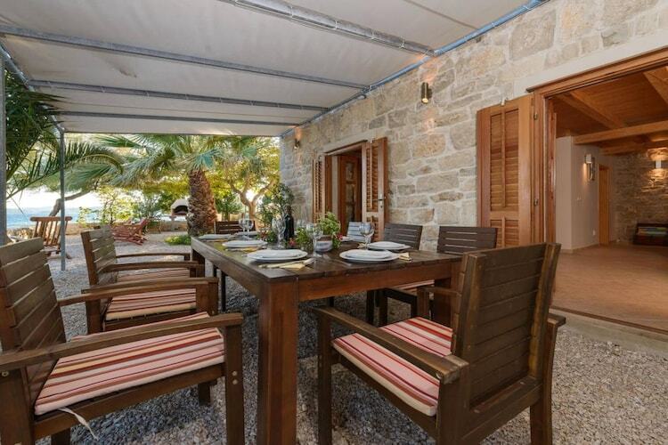 La villa s'étend sur trois niveaux agencés avec soin et peut accueillir jusqu'à neuf personnes. Le rez-de-chaussée comprend une cuisine professionnelle et un vaste salon avec cheminée en pierre, s'ouvrant directement sur une cour méditerranéenne. Ici, une piscine privée d'eau salée et un charmant pavillon en pierre avec barbecue vous invitent à de longs dîners en plein air. Empruntez l'escalier en colimaçon en bois pour découvrir des chambres climatisées et paisibles, dont une magnifique suite parentale au deuxième étage avec un lit king-size et une baignoire offrant une vue panoramique imprenable sur l'archipel de Korčula.