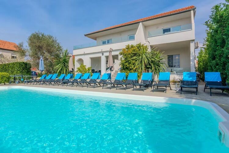 Située à proximité des plages, des ports de plaisance et des villes côtières historiques, cette villa offre toute l'année la possibilité de profiter de promenades en bord de mer, d'excursions insulaires et de découvrir la Dalmatie croate.