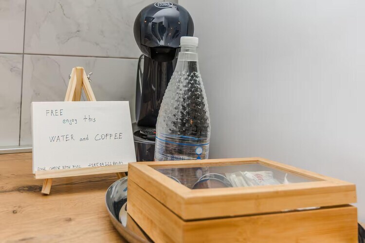 Les hôtes peuvent profiter d'une terrasse extérieure privée avec une table de ping-pong, offrant une vue imprenable sur le paysage côtier environnant, créant un cadre idéal pour un café matinal ou des repas conviviaux. Une piscine commune invite à la baignade tout au long de la journée, tandis que des chaises longues et un espace barbecue permettent de savourer des repas en plein air en toute détente. Un parking privé est également disponible sur place pour faciliter votre arrivée.