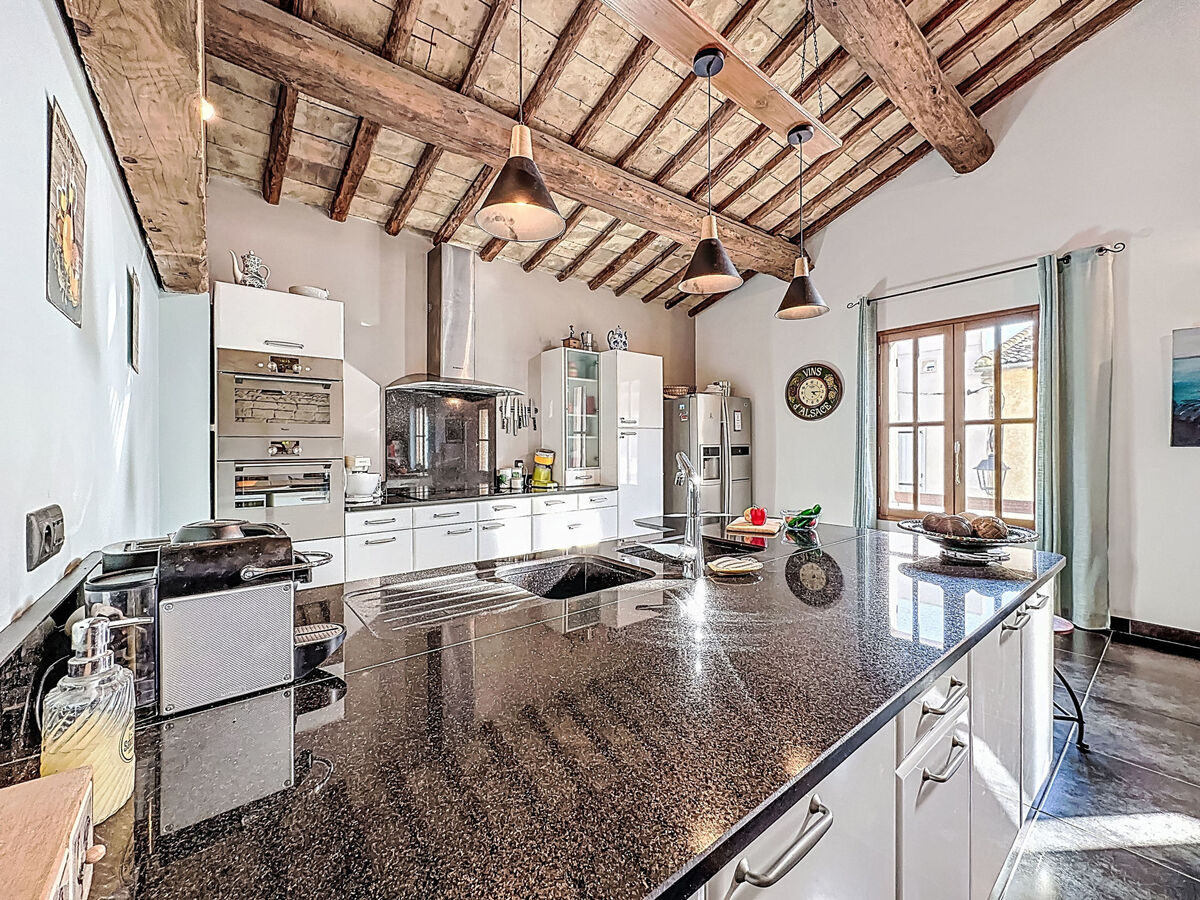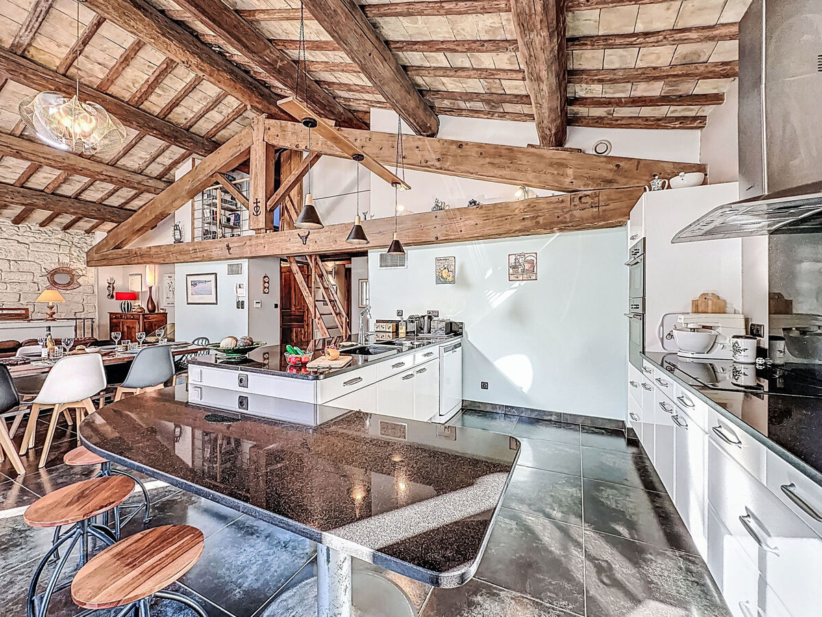Cuisine (four, lave-vaisselle, 4 plaques à induction, 4 feux, grille-pain, bouilloire électrique, micro-ondes, congélateur, cafetière électrique, Capsules pour machine à café (NESPRESSO) (NON INCLUSES), ilot de cuisine).