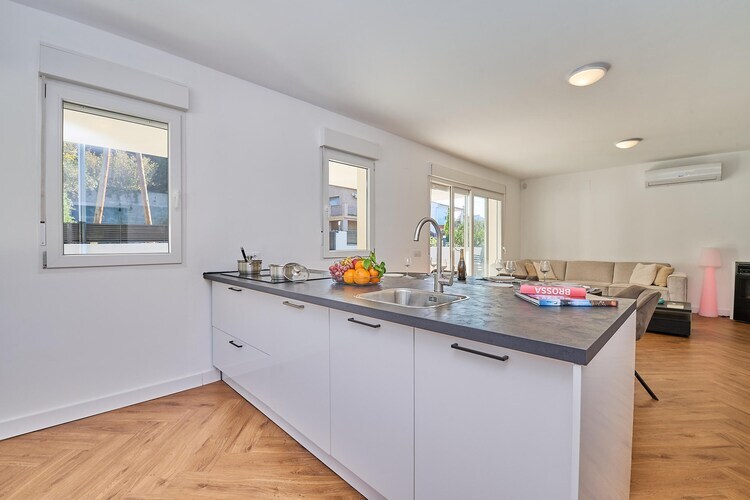 cuisine(foyer(induction), bouilloire, grille-pain, cafetière/percolateur, four, micro ondes, lave-vaisselle , réfrigérateur, congélateur, ), salle à manger-salon(TV, table, coin salon), chambre(lit double(180 x 210 cm)), chambre(lit double(180 x 210 cm)), chambre(lit double(180 x 210 cm)), salle de bains(douche, lavabo, lavabo, WC), WC(WC), Accès Internet, Meubles de jardin, douche, lave-linge , patio, chauffage, climatisation, terrasse, jardin, transats, piscine(privé, 7 x 3 m.), fer à repasser