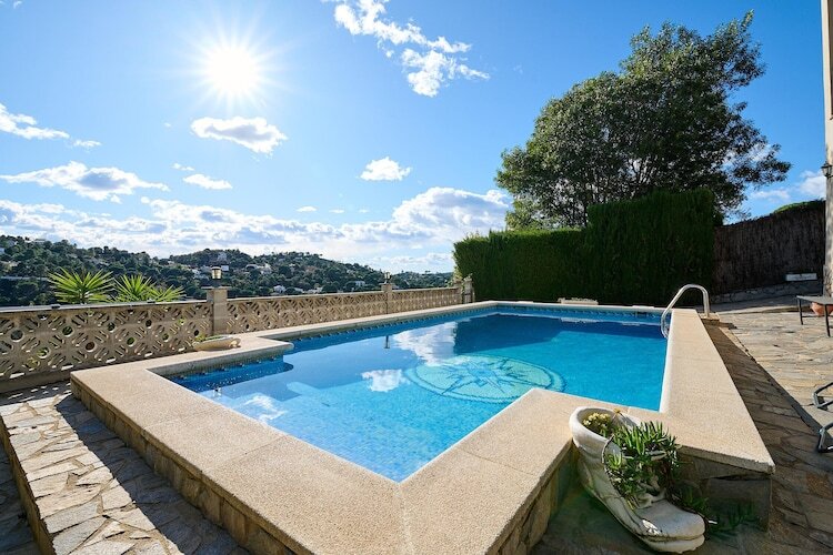 L'espace extérieur s'articule autour d'une piscine privée et d'un espace barbecue entièrement couvert, où vous pourrez savourer des spécialités méditerranéennes tout en admirant la magnifique vue sur les montagnes. Le terrain clôturé de 830 m² offre un jardin spacieux et sécurisé pour les enfants, ainsi qu'un parking privé pour deux véhicules. À l'intérieur, le rez-de-chaussée comprend un salon-salle à manger convivial avec cheminée, une cuisine entièrement équipée et trois chambres confortables. L'appartement indépendant dispose de son propre salon, d'une kitchenette et d'une chambre double, offrant un agencement flexible et fonctionnel.
