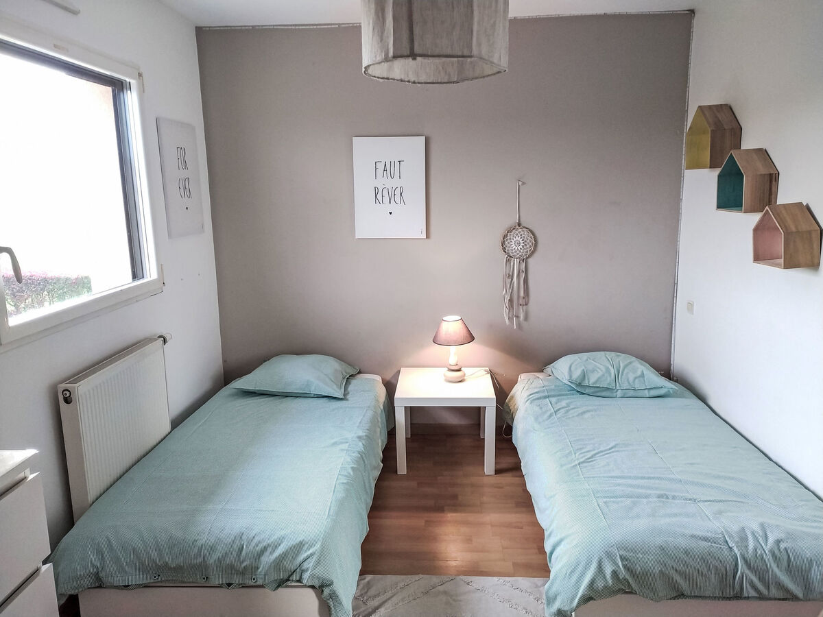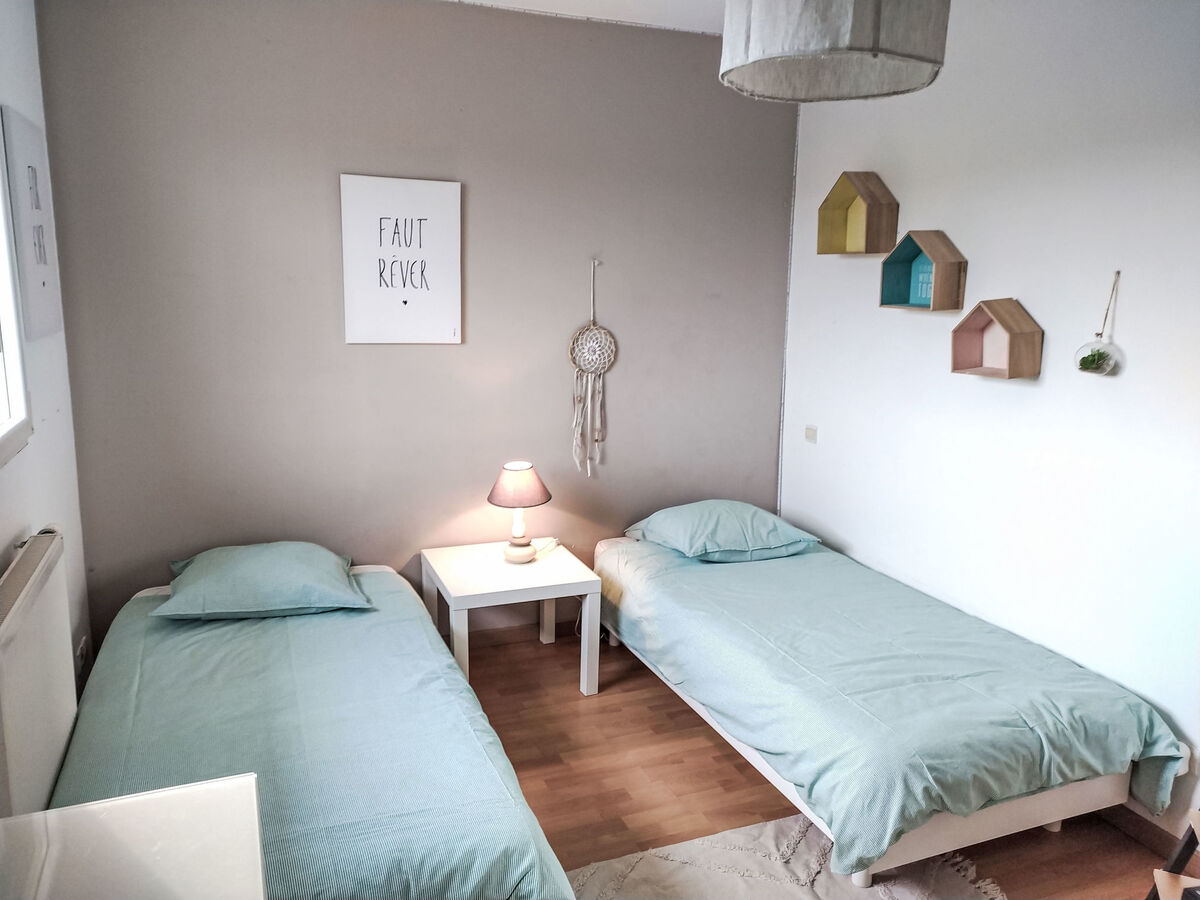 1 chambre avec 1 grand-lit (160 cm, longueur 200 cm).