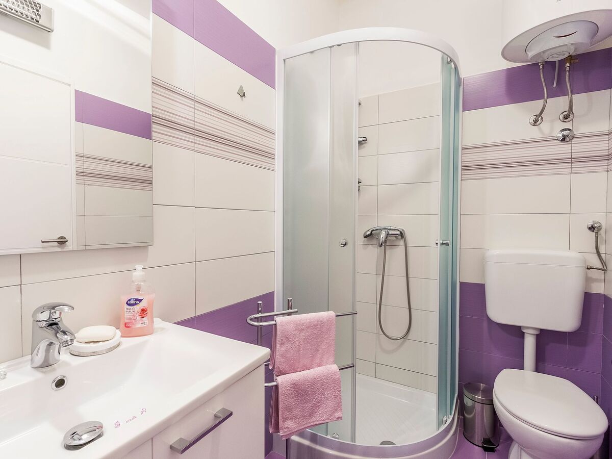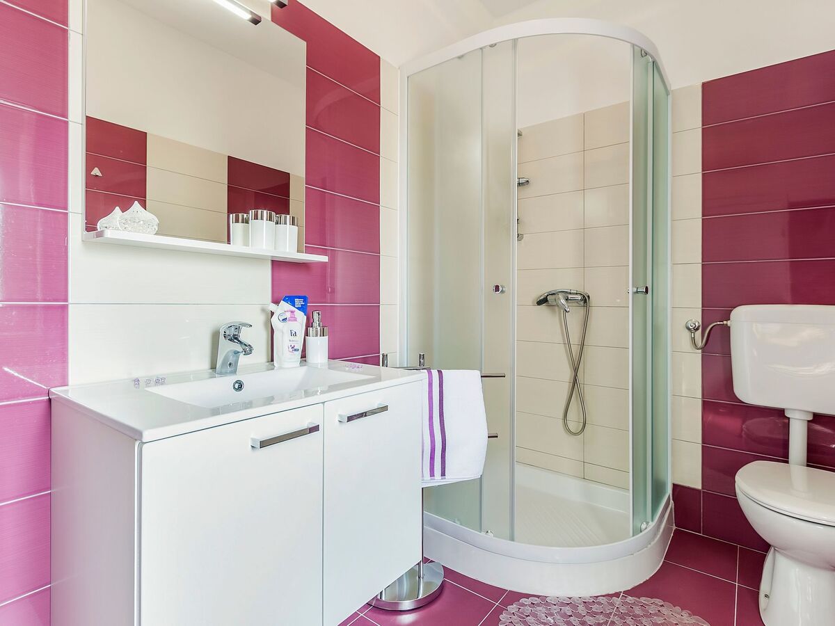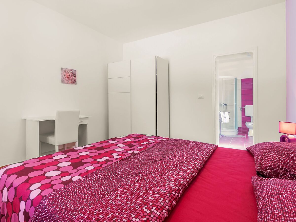 It consists of a large living space with modern kitchen with appliances, dining table for 6 persons and living area with sleeping couch for two persons , one shower/toilet in the corridor with washing machine, two two-persons bedrooms wih double bed, air-conditione and ensuite bathroom/toilet.