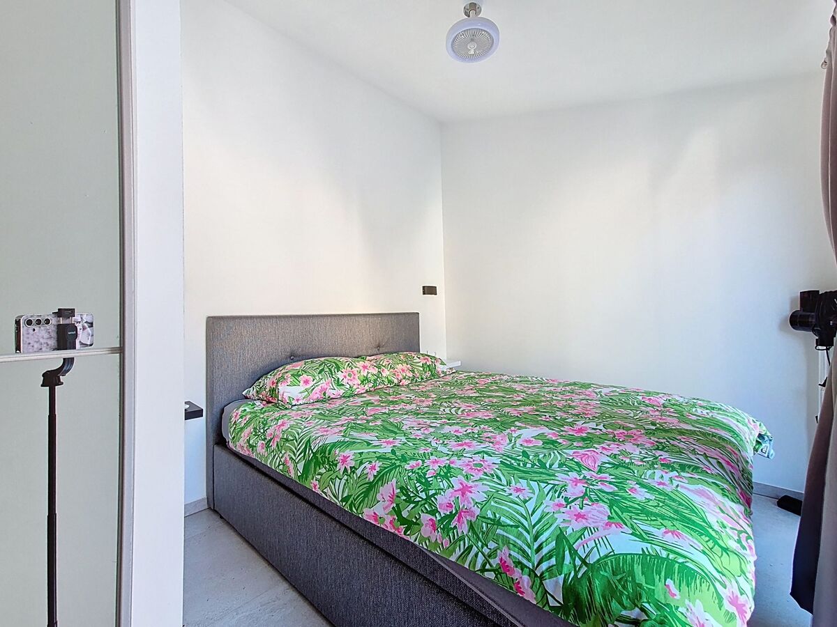 1 chambre avec 1 grand-lit (180 cm, longueur 200 cm), douche/WC et air-conditionné.