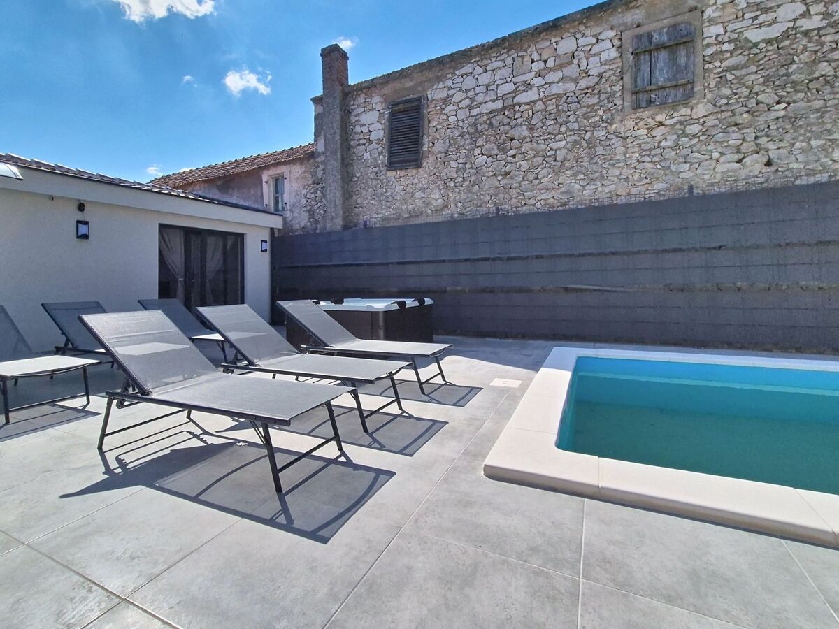 A usage privé: terrain 300 m2 (clôturé), piscine (7 x 3 m, profondeur 150 cm, disponibilité saisonnière: 01.Mai.