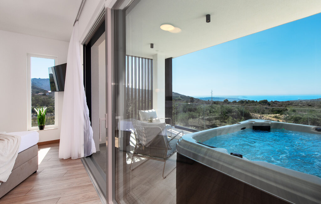 Bien-être à l'extérieur : Location de vacances disposant de chaises-longues et d'un ou plusieurs équipements tels que piscine extérieure, jacuzzi extérieur, lit à baldaquin de jardin etc...