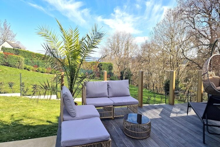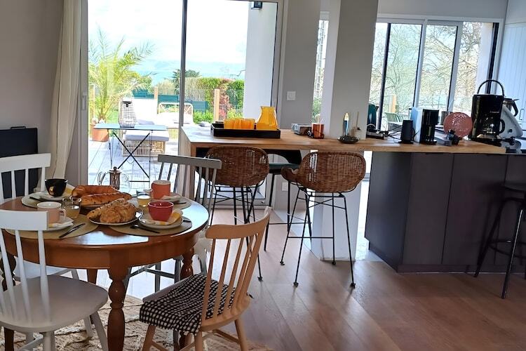 Entièrement rénovée avec goût, elle offre une superbe pièce de vie baignée de lumière grâce à sa large baie vitrée ouvrant sur la terrasse et le jardin avec vue mer. Salon cosy, table modulable, cuisine ouverte entièrement équipée : tout est réuni pour partager de beaux moments en famille ou entre amis.