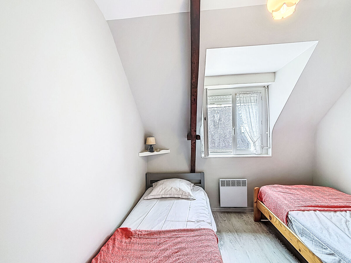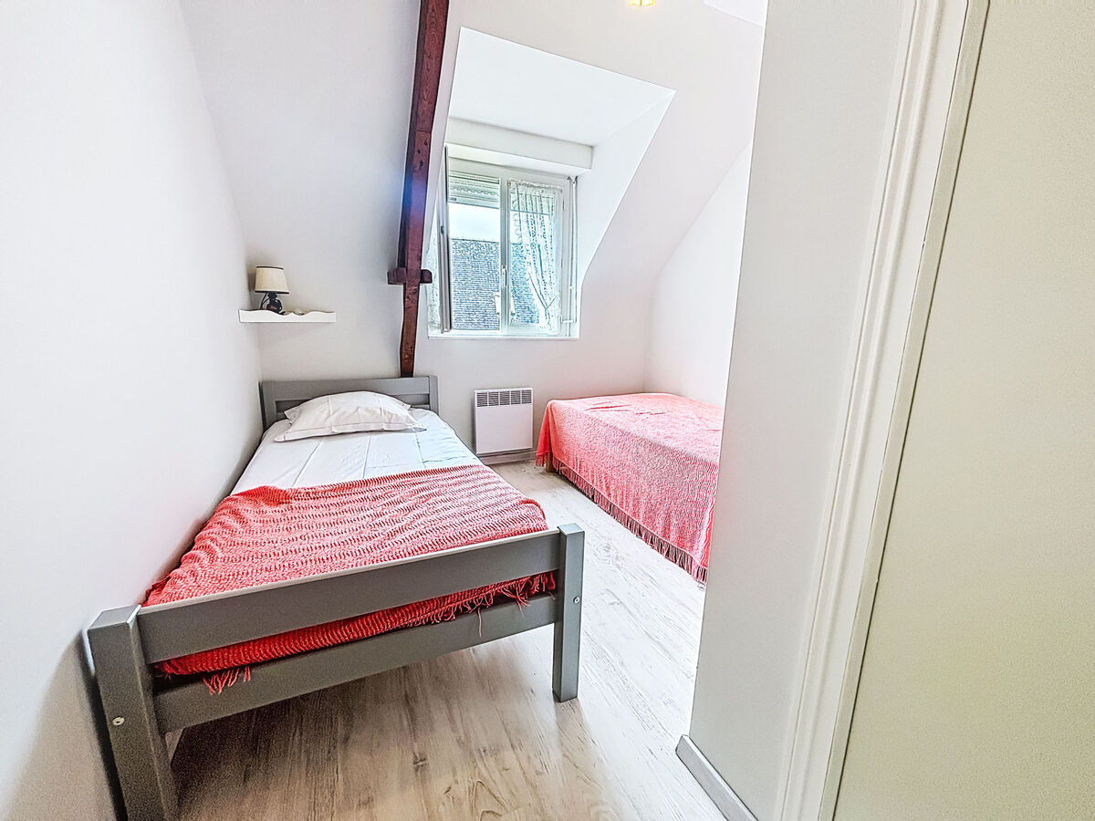 À l'étage supérieur: 1 chambre avec 2 lits (90 cm, longueur 190 cm).