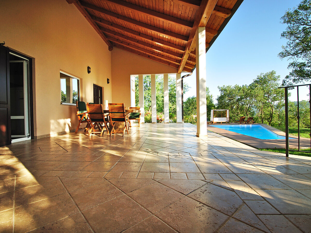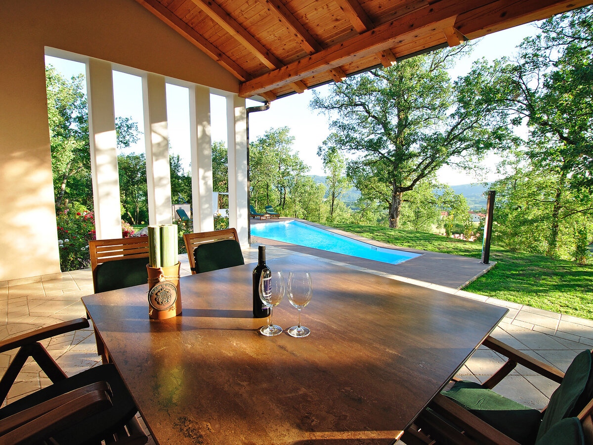 À 2.5 km du centre de Buzet, à 35 km du centre de Novigrad en-dehors de la localité, situation tranquille sur une colline, à 35 km de la mer, dans la verdure.