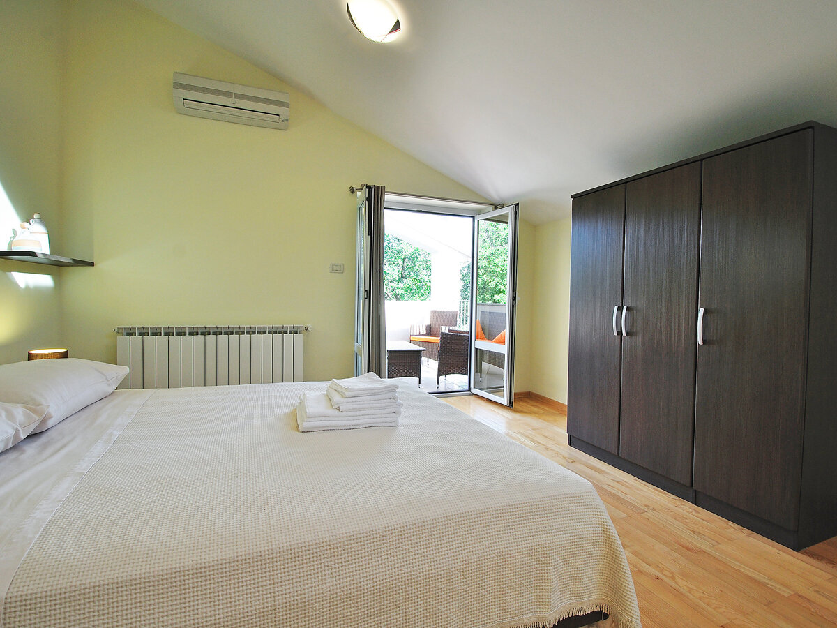 1 chambre, mansardée hauteur plafond 160 - 250 cm avec 1 lit double (2 x 80 cm, longueur 200 cm), air-conditionné.