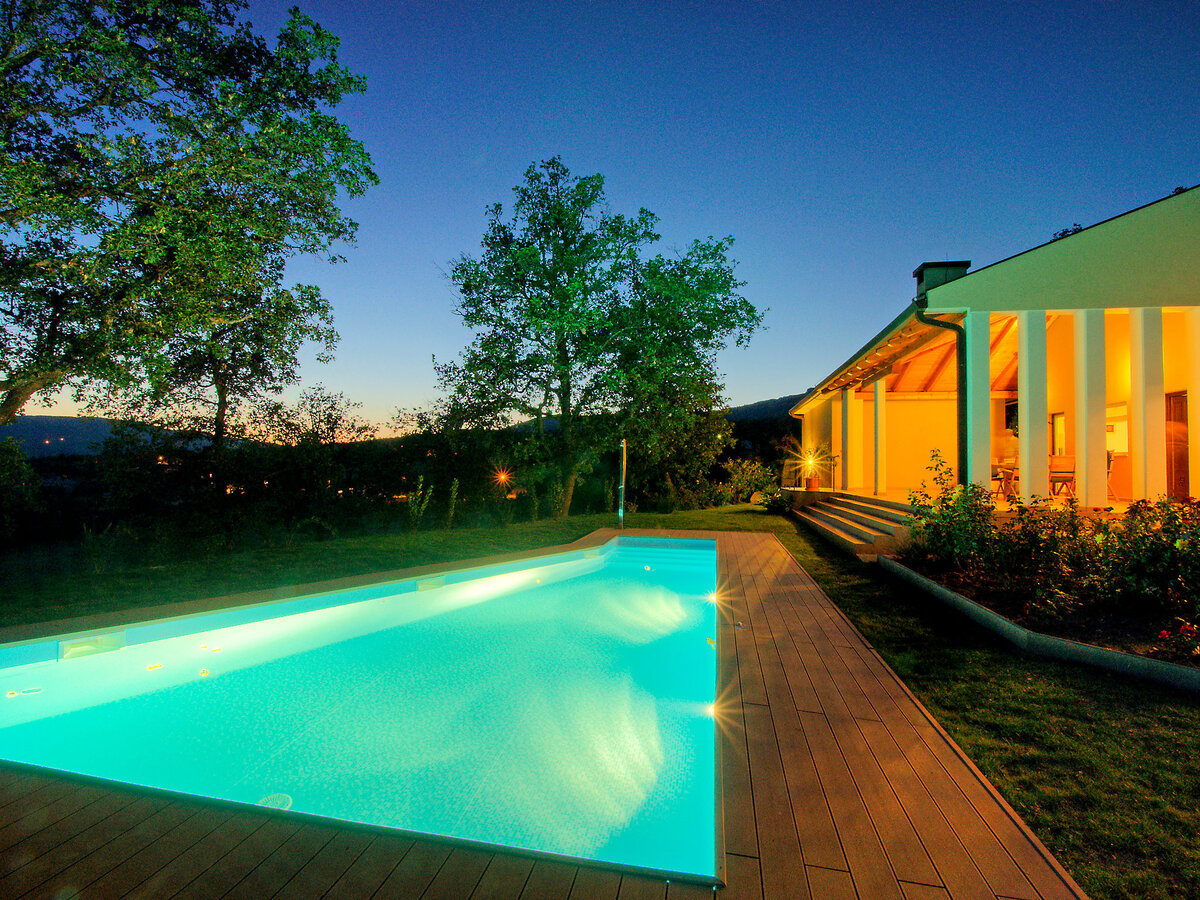 A usage privé: terrain 3'000 m2 (clôturé), jardin avec pelouse et fleurs, piscine (40 m2, profondeur 140 cm, disponibilité saisonnière: 01.Mai.