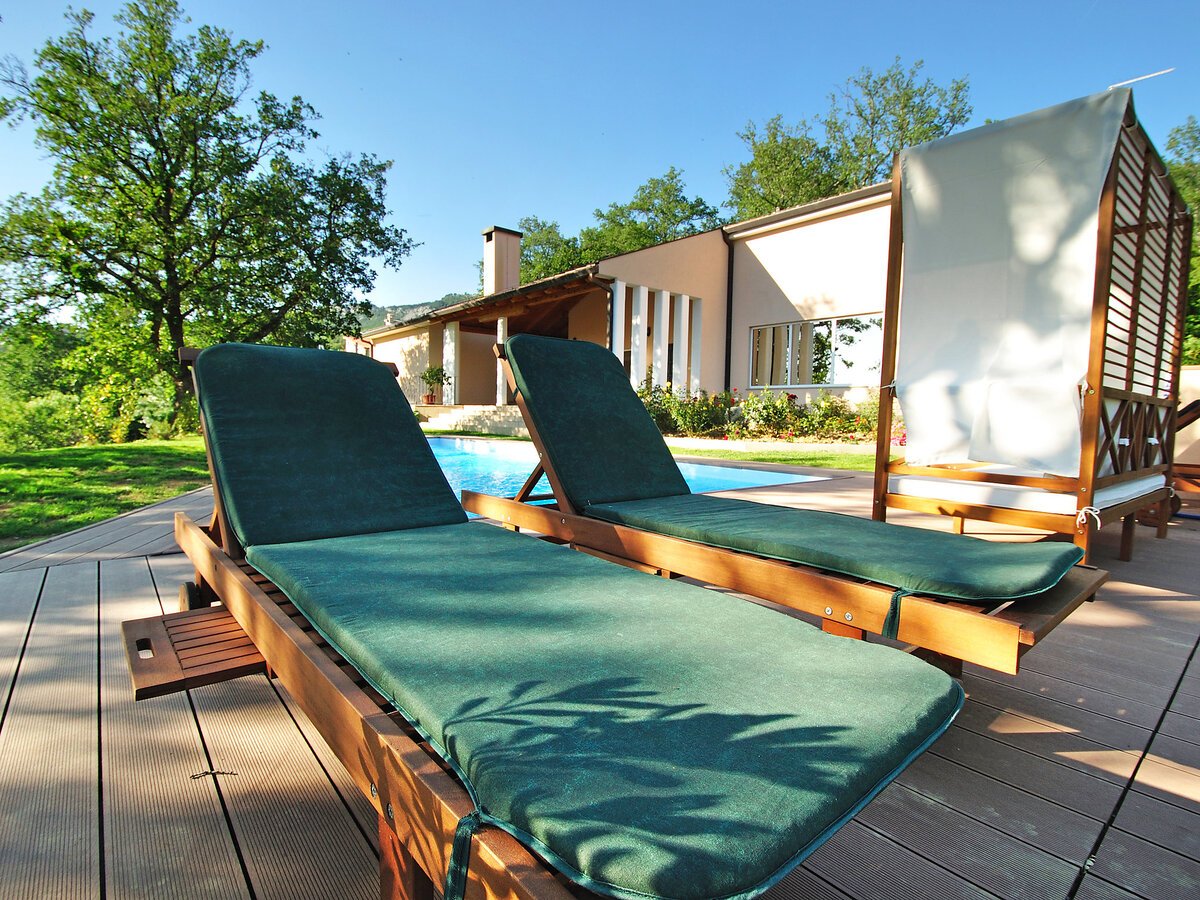 Meubles de terrasse, barbecue (portable), chaises longues.