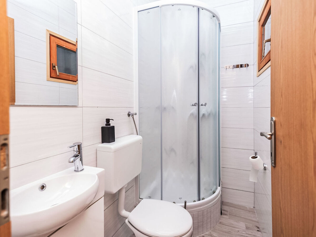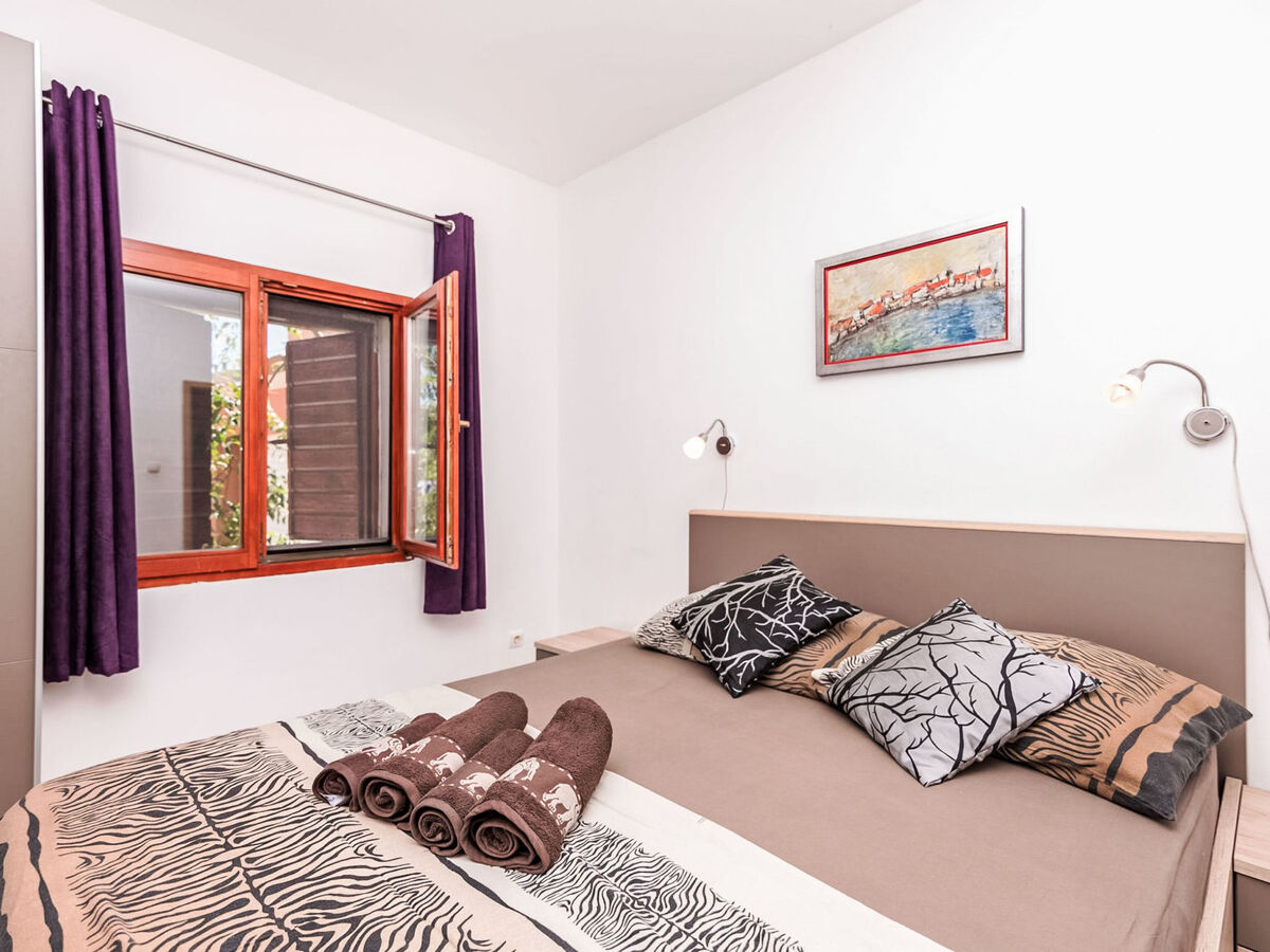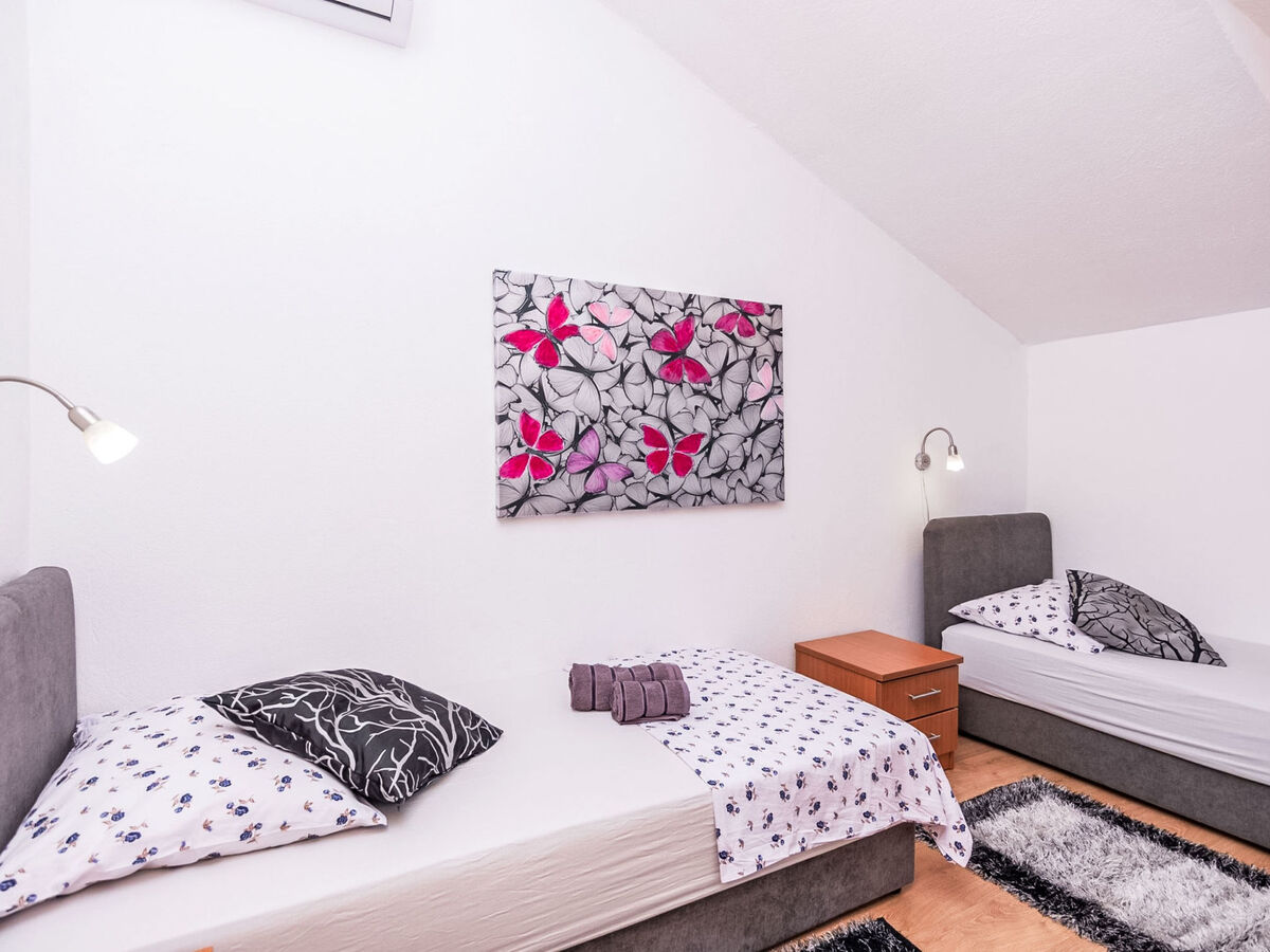 1 chambre avec 2 lits (90 cm, longueur 200 cm), douche/WC et air-conditionné.