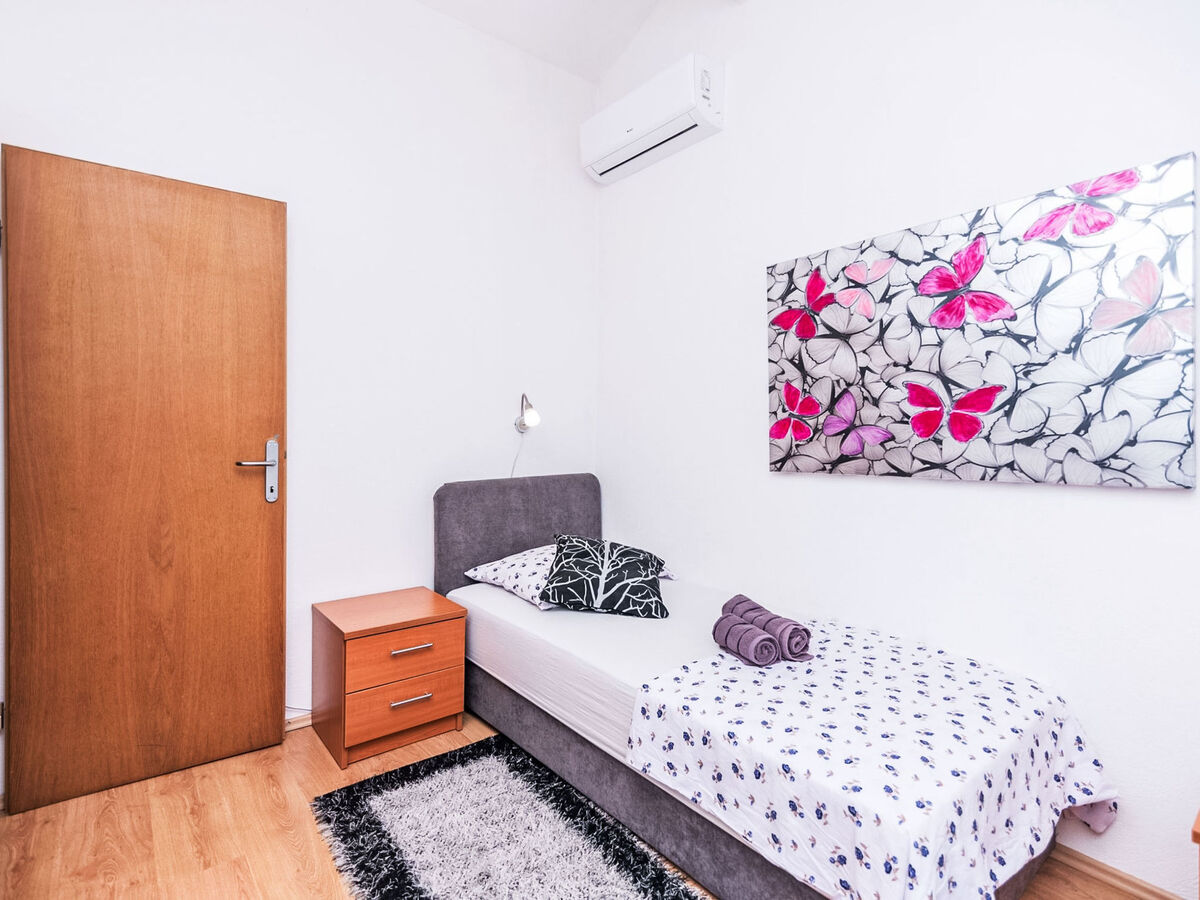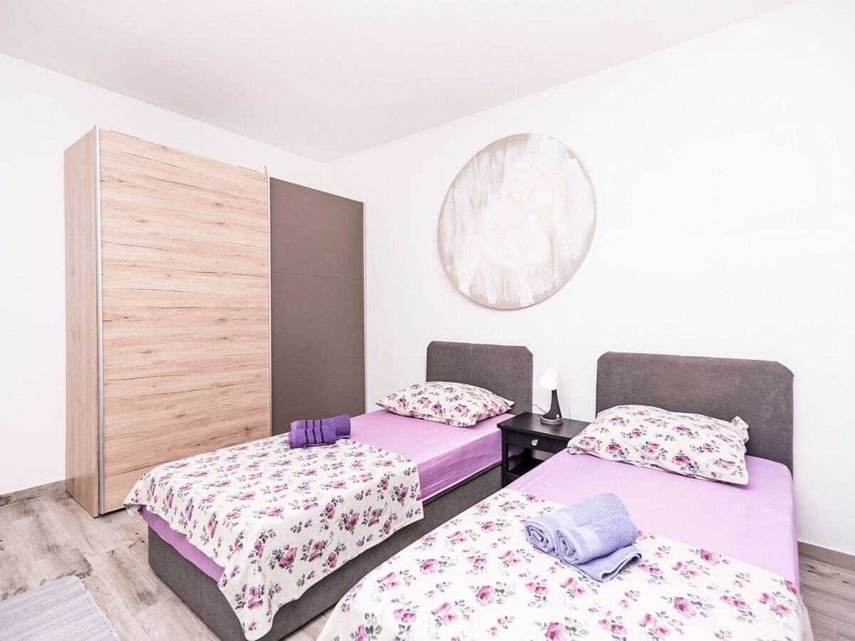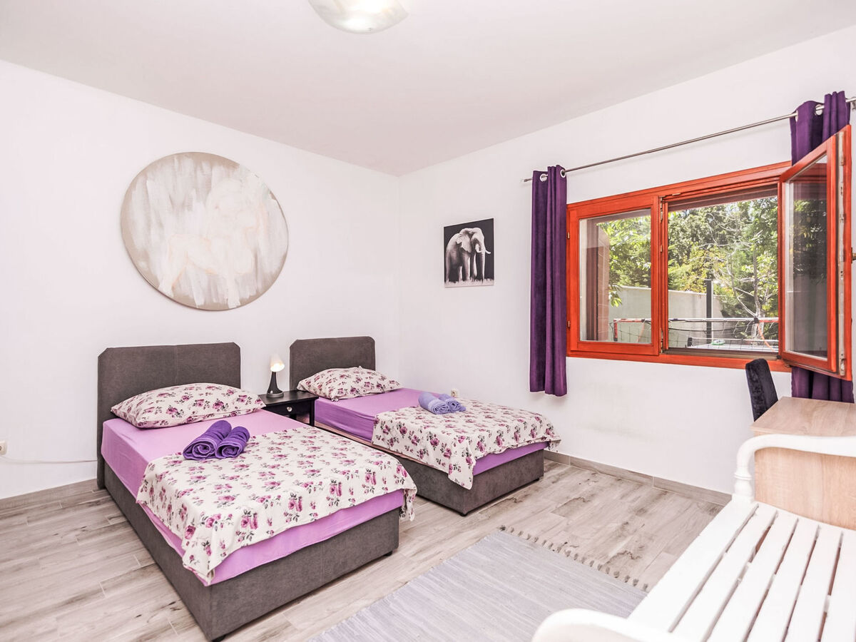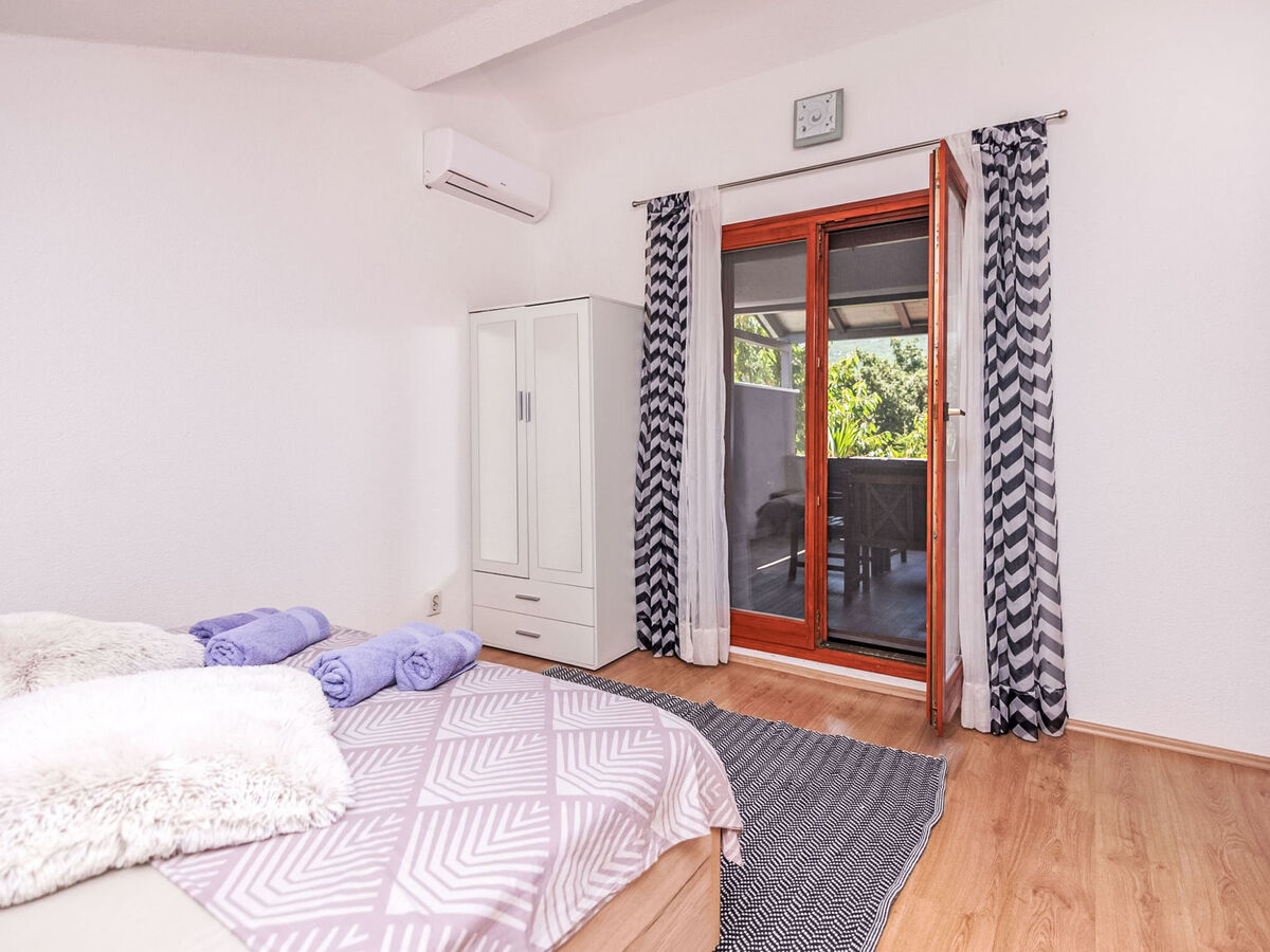 1 chambre avec 2 lits (90 cm, longueur 200 cm), douche/WC et air-conditionné.